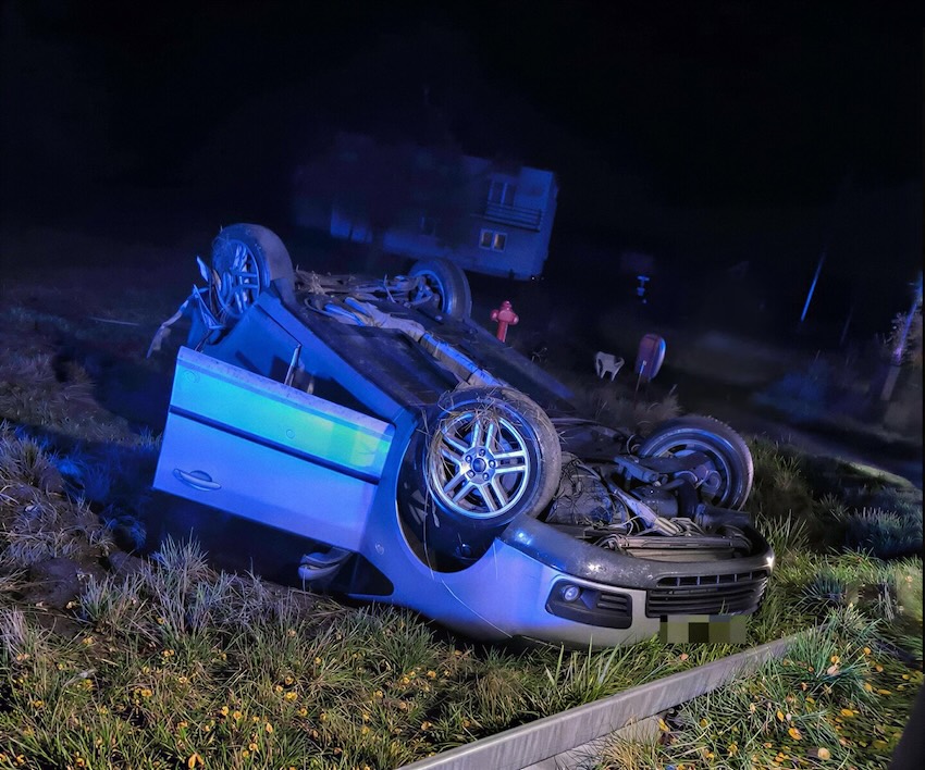 Wypadek w gminie Szepietowo. Samochód dachował, jedna osoba w szpitalu [foto]