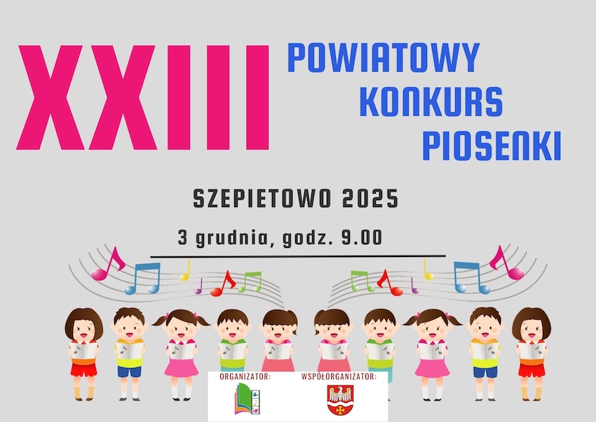 Gminny Ośrodek Kultury w Szepietowie ogłosił nabór do XXIII Powiatowego Konkursu Piosenki. To szansa dla młodych, uzdolnionych wokalnie mieszkańców powiatu wysokomazowieckiego na zaprezentowanie swoich umiejętności przed szerszą publicznością. Finał konkursu zaplanowano na 3 grudnia 2025 roku.