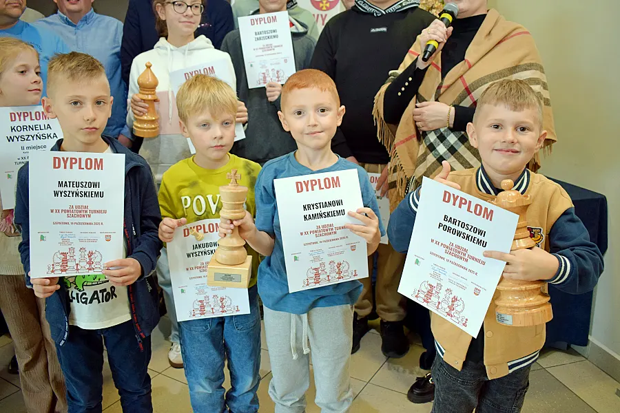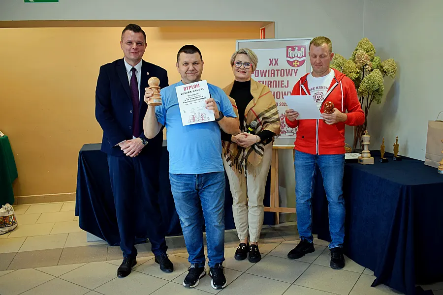 Najważniejszy tytuł, Mistrza XX Powiatowego Turnieju Szachowego, zdobył Tomasz Wyszyński, który zdominował również rywalizację w kategorii mężczyzn. Wyróżnienia otrzymali także najstarszy zawodnik turnieju, Witold Wojno, oraz najmłodszy uczestnik, Bartosz Porowski, co symbolicznie podkreśliło międzypokoleniowy wymiar wydarzenia.