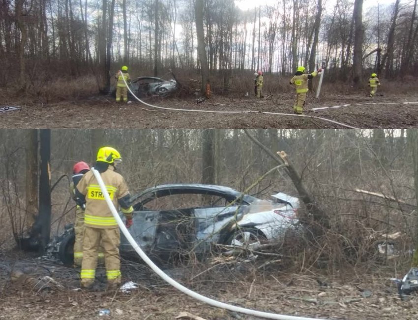W dniu 16 marca 2025 roku w miejscowości Wojny-Pogorzel,w gminie Szepietowo, doszło do groźnego wypadku drogowego. Samochód osobowy uderzył w drzewo przy drodze, a następnie stanął w płomieniach. Na miejsce natychmiast zadysponowano trzy zastępy straży pożarnej.