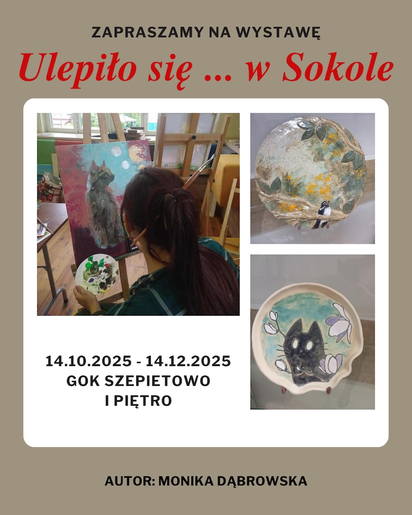 Gminny Ośrodek Kultury w Szepietowie stał się miejscem prezentacji wyjątkowej wystawy ceramiki autorstwa Moniki Dąbrowskiej. Ekspozycja zatytułowana „Ulepiło się… w Sokole” to podróż przez świat inspirowany naturą, a zarazem opowieść o artystycznej drodze.