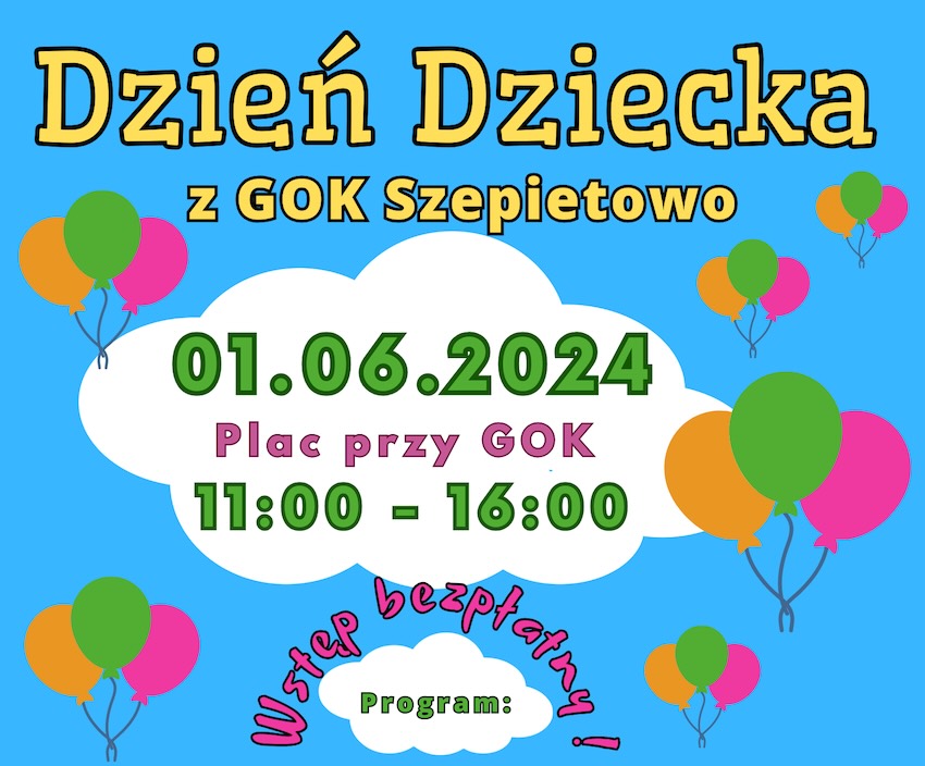 Gminny Ośrodek Kultury w Szepietowie zaprasza 1 czerwca na DZIEŃ DZIECKA 2024. Wydarzenie odbędzie się w godzinach 11:00-16:00.