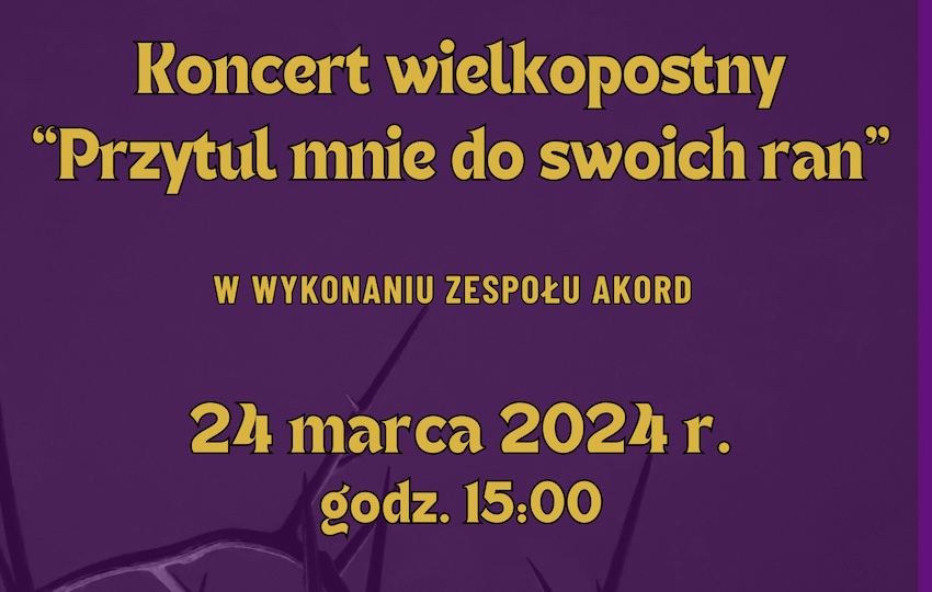 Gminny Ośrodek Kultury w Szepietowie zaprasza na Koncert Wielkopostny pn. "Przytul mnie do swoich ran" w wykonaniu zespołu AKORD.