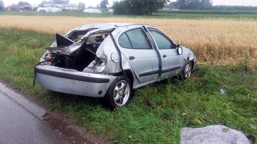 Osobowe Renault zjechało do rowu i dachowało. Pojazdem podróżowały dwie osoby. Do wypadku doszło dzisiaj rano (12.07) w okolicy miejscowości Wojny-Szuby Włościańskie w gminie Szepietowo.