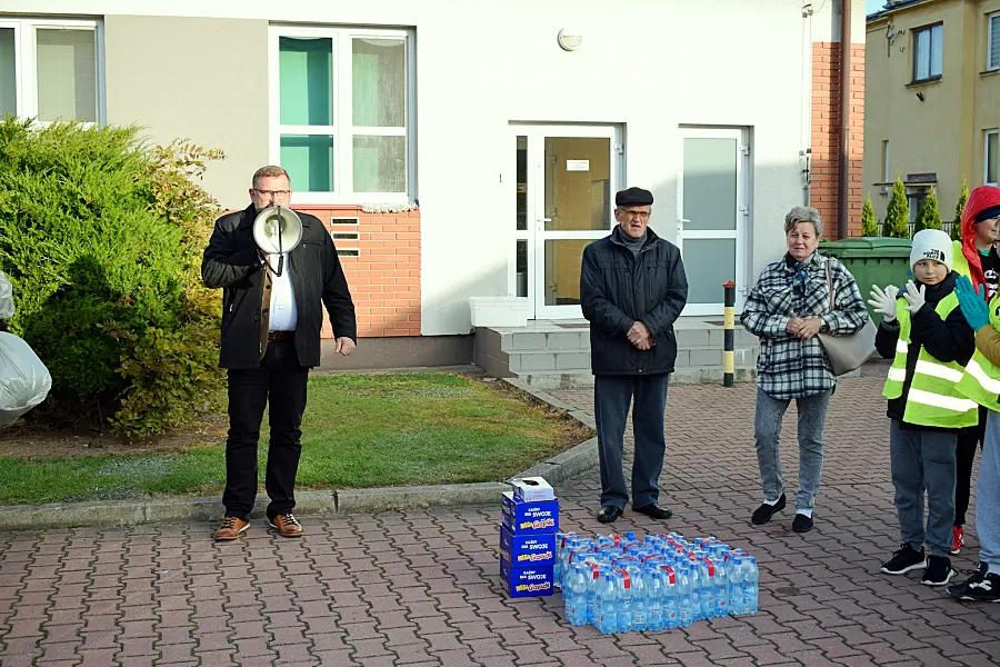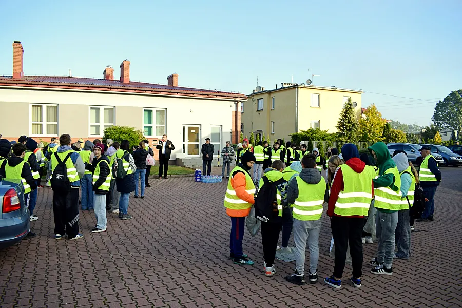 Wszystko rozpoczęło się na dziedzińcu szkoły, gdzie uczestników powitali dyrektor placówki Piotr Markowski, szkolna koordynatorka akcji Ewa Niemyjska oraz opiekun seniorów Krzysztof Niemyjski. Po krótkim wprowadzeniu i zaopatrzeniu się w worki, rękawice, a także wodę i słodycze, wolontariusze wyruszyli na wyznaczone trasy.