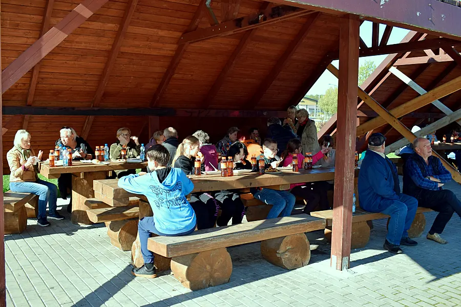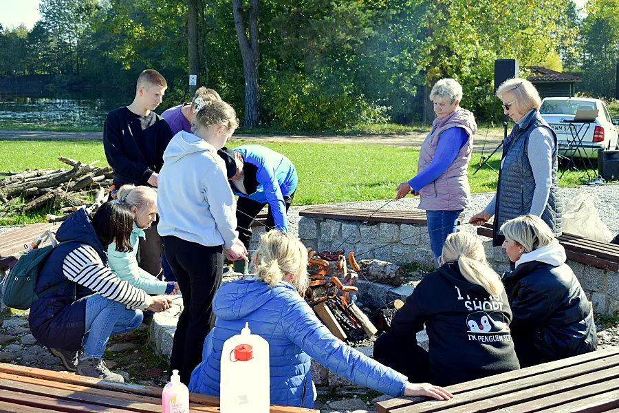 Po trzech godzinach intensywnej pracy wszyscy uczestnicy spotkali się na wspólnym ognisku. Dzięki funduszom przekazanym przez Urząd Miejski w Szepietowie, nie zabrakło kiełbasek, napojów i słodyczy. Po posiłku przyszedł czas na zabawę, w tym wspólne tańce w rytm „belgijki”. Dodatkowe atrakcje, takie jak gry „Rzut rybką do koła” i „Pomocną dłoń”, przygotował Tomasz Sieńczuk, prezes Zarządu Koła Wędkarskiego w Szepietowie.