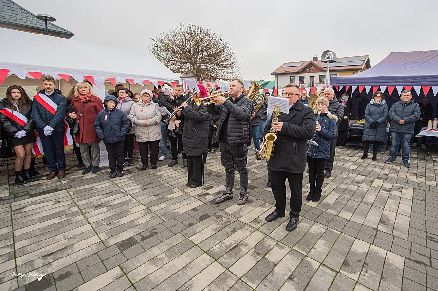 Organizatorzy zadbali również o poczęstunek dla mieszkańców. Na wszystkich czekała gorąca grochówka, kawa, herbata oraz ciasto. Słodkości zostały przygotowane dzień wcześniej przez seniorów działających przy GOK, którzy wspólnie z pracownikami ośrodka upiekli je dla uczestników obchodów.