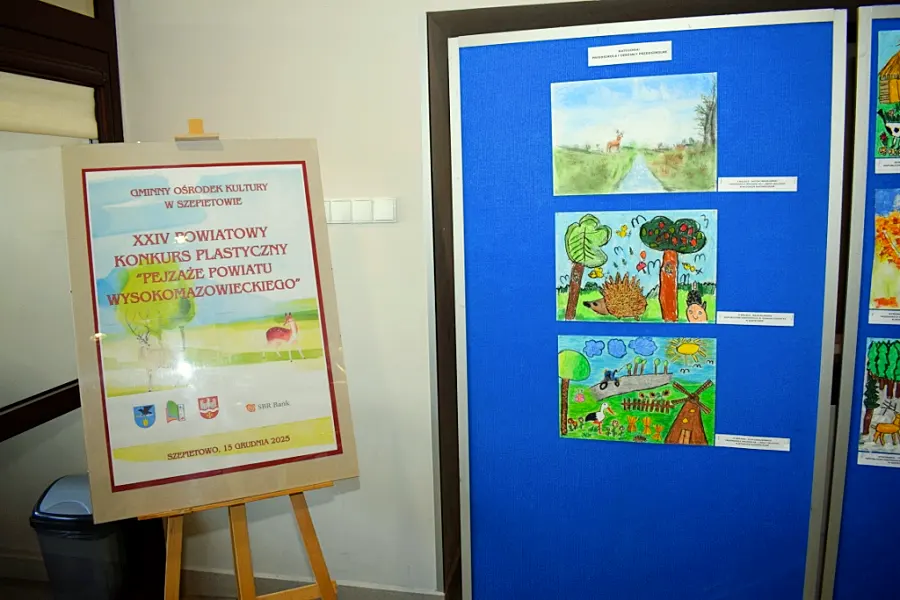 Ponad trzysta siedemdziesiąt prac wpłynęło na XXIV edycję Powiatowego Konkursu Plastycznego, którego finał odbył się w poniedziałek, 15 grudnia 2025 roku w Szepietowie. Wydarzenie zgromadziło reprezentantów aż 26 instytucji oświaty i kultury z terenu powiatu wysokomazowieckiego, a najlepsi młodzi artyści odebrali nagrody i wyróżnienia. Tematem przewodnim artystycznych zmagań były „Pejzaże Powiatu Wysokomazowieckiego”.