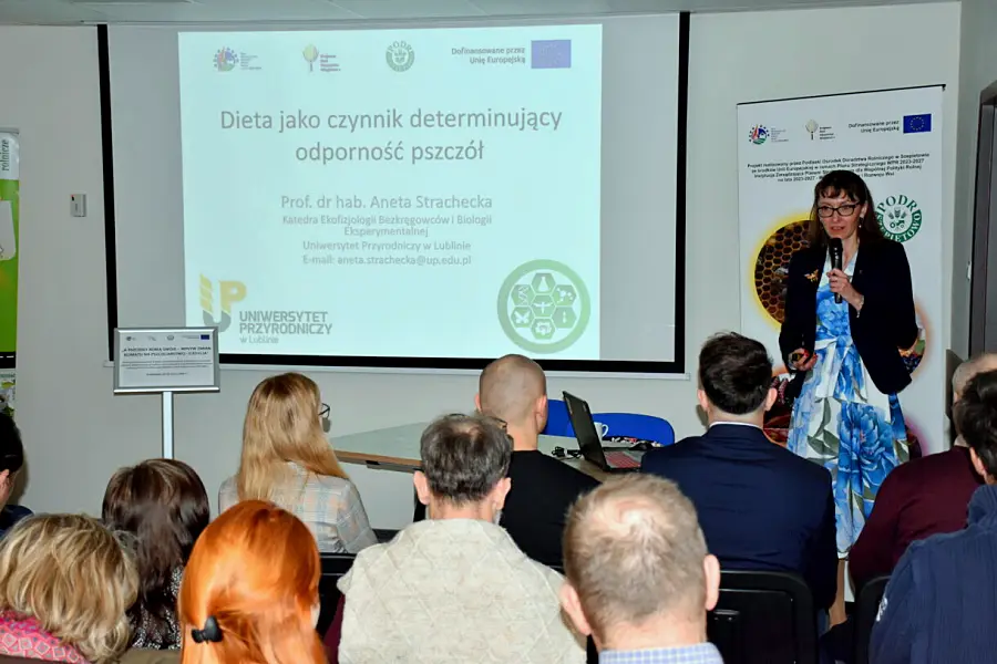 Niezwykle inspirujący wykład wygłosiła prof. dr hab. Aneta Strachecka z Uniwersytetu Przyrodniczego w Lublinie. Przedstawiła ona dietę jako kluczowy czynnik determinujący odporność pszczół, udowadniając, że dostęp do różnorodnych pożytków i odpowiednie dokarmianie są naturalną barierą chroniącą owady przed patogenami i pestycydami.