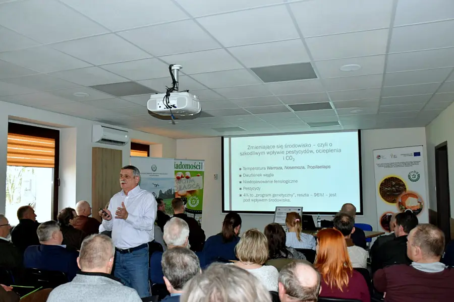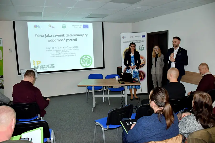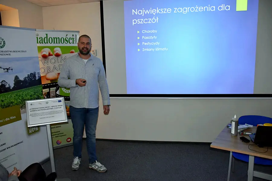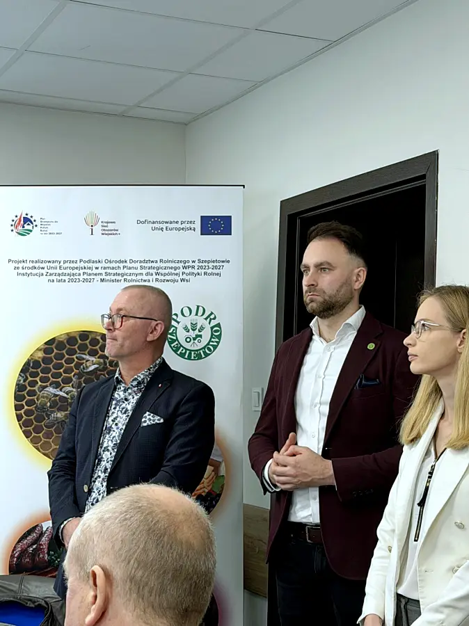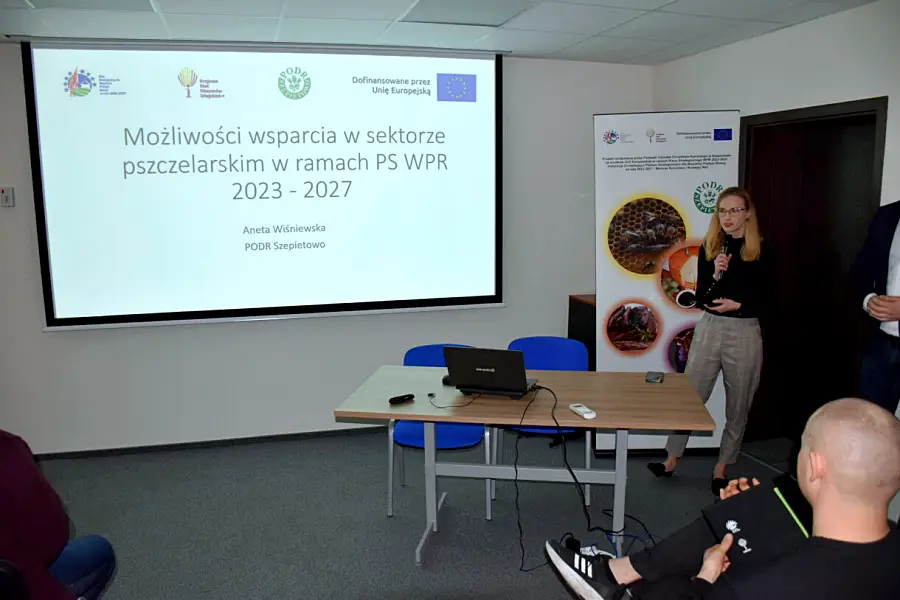 Wydarzenie wzbogaciła obecność mgr Marcina Kruszewskiego, Prezesa Stowarzyszenia Pszczelarzy Zawodowych „Polanka”, który dzielił się spostrzeżeniami na temat kondycji polskiego pszczelarstwa i znaczenia integracji środowiska. Na zakończenie konferencji, z myślą o rozwoju ekonomicznym gospodarstw pasiecznych, mgr inż. Aneta Wiśniewska (PODR Szepietowo) szczegółowo omówiła możliwości wsparcia finansowego w sektorze pszczelarskim w ramach Planu Strategicznego dla Wspólnej Polityki Rolnej na lata 2023–2027.