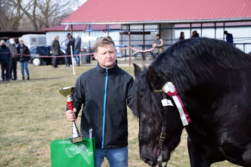 Poproszony o krótką charakterystykę swoich koni, które w dniu dzisiejszym zajęły pierwsze i trzecie miejsca, Pan Sylwester bez namysłu i z dumą wymienia ich zalety: - Myślę, że jest to znakomity koń (ogier Lanos) o znakomitym ruchu co dzisiaj nam pokazał, rusza się rewelacyjnie w kłusie, no i przede wszystkim ma poprawny spód, czego nam dzisiaj brakuje u koni zimnokrwistych, ponieważ domieszki zagraniczne niekoniecznie poprawiły nogi u koni, także komisja zwraca uwagę na te spody, a mówiąc spody mam na myśli kończyny przednie i kończyny tylne. Trzecie miejsce to koń też z bardzo dobrym ruchem, troszeczkę słabszy na spodzie, ale też bardzo harmonijny i dobrze zbudowany, i to myślę wpłynęło na sukces dzisiejszej wystawy, także te cechy są bardzo ważne dla hodowców.