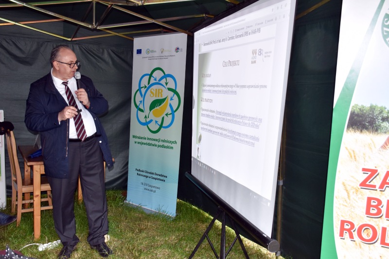 Gości przywitał Wojciech Mojkowski Dyrektor Podlaskiego Ośrodka Doradztwa Rolniczego w Szepietowie, który w kilku słowach zwrócił się do odwiedzających, „Mamy nadzieje że ta impreza da rolnikom możliwość porównania wielu odmian zbóż, uprawianych w zbliżonych warunkach klimatycznych, glebowych, oraz przy zastosowaniu takiego samego nawożenia i ochrony chemicznej. Jest to dla nas jako organizatorów bardzo ważne wydarzenie. Mamy nadzieję że również Państwo a przede wszystkim rolnicy, przy okazji tego typu imprez znajdziecie odpowiedź na problemy, które w nowoczesnym rolnictwie są niezwykle istotne i mają bardzo duży wpływ na osiąganie odpowiednich i opłacalnych wydajności produkcyjnych. W czasach, w których precyzyjne rolnictwo jest czynnikiem decydującym o wyniku ekonomicznym, istotnym elementem jest również dobór odpowiedniej odmiany, dostosowanej do profilu gospodarstwa. Dlatego zapraszamy do zwiedzenia naszych upraw i korzystania z naszej „bazy wiedzy”.