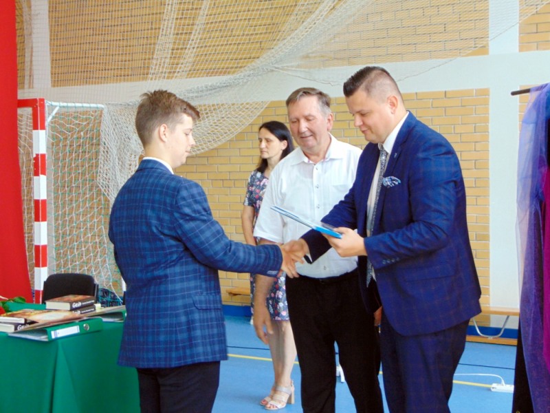 Po tych zabawnych, ale i wzruszających chwilach przyszedł czas na wręczenie nagród za liczne osiągnięcia. Nagrody za najwyższą średnią ocen ufundował i wręczył Burmistrz Szepietowa Robert Lucjan Wyszyński. Wyróżnieniem tym zostały uhonorowane dwie absolwentki: Wiktoria Koc z kl. VIIIA i Magdalena Włostowska z kl. VIIIB. Małgorzata Krajewska przekazała nagrody swoim podopiecznym - laureatom Ogólnopolskiego Projektu Edukacyjnego do Sejmu Dzieci i Młodzieży: Wiktorii Koc i Konradowi Czarkowskiemu z kl. VIIIA. Natomiast Ksawiera Krajewskiego z kl. VIIIA wyróżniono za uzyskanie tytułu finalisty w Wojewódzkim Konkursie z Języka Niemieckiego. Rodzice uczniów, którzy uzyskali średnią ocen 4,75 i wyższą, otrzymali listy gratulacyjne. Następnie wychowawcy klas ósmych: Beata Sokołowska i Józef Dmochowski wręczyli świadectwa ukończenia szkoły. Po ich otrzymaniu absolwenci ze łzami w oczach pożegnali się ze wszystkimi zgromadzonymi, mając świadomość, że zamykają kolejny rozdział swojego życia. Niektórzy być może zazdrościli młodszym kolegom z klas IV-VII, odbierającym w późniejszych godzinach nagrody i świadectwa od swoich wychowawców, ponieważ mają oni jeszcze przed sobą kolejne, tak piękne spotkania.