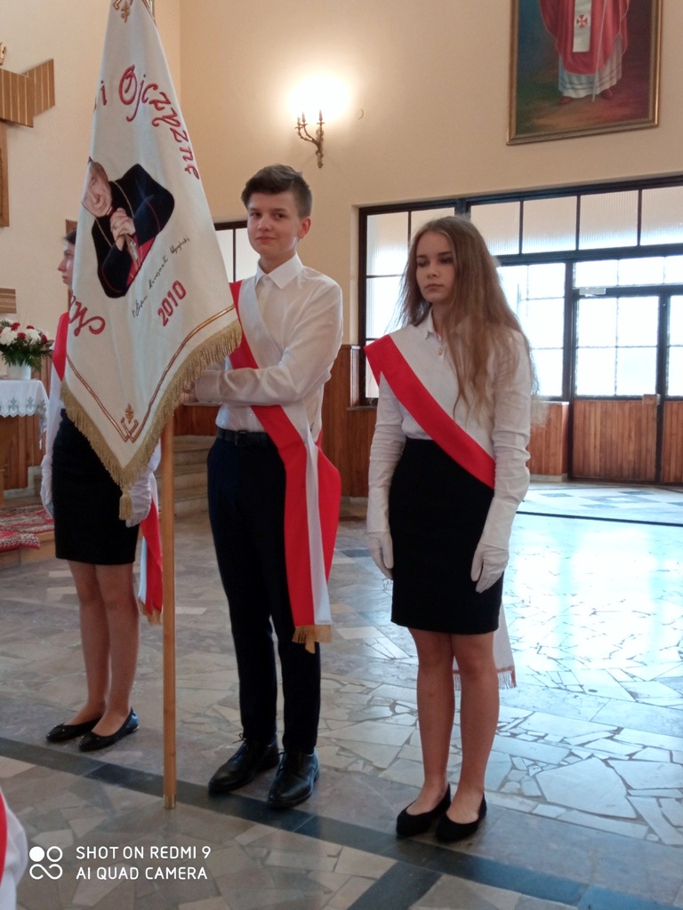 W dalszej kolejności ósmoklasiści przekazali sztandar swoim młodszym kolegom, złożyli przyrzeczenie absolwentów i wysłuchali wystąpienia pani Beaty Sokołowskiej - wychowawczyni klasy VIIIB. Następnie absolwenci zaprezentowali piękną i wzruszającą część artystyczną przygotowaną pod kierunkiem wychowawców i Anny Powojskiej.
