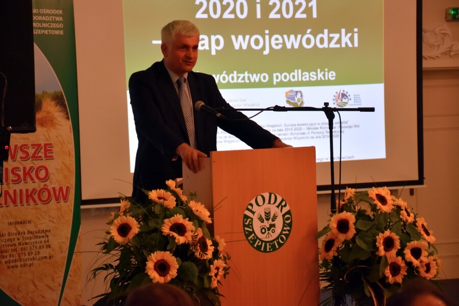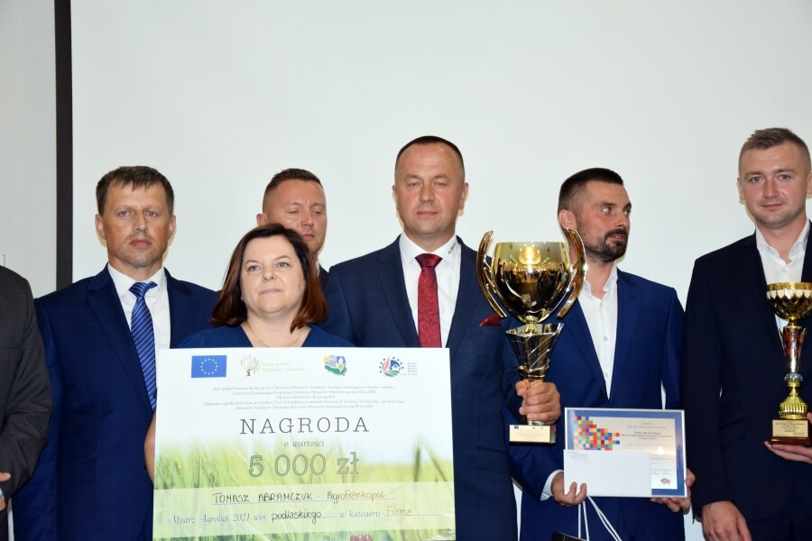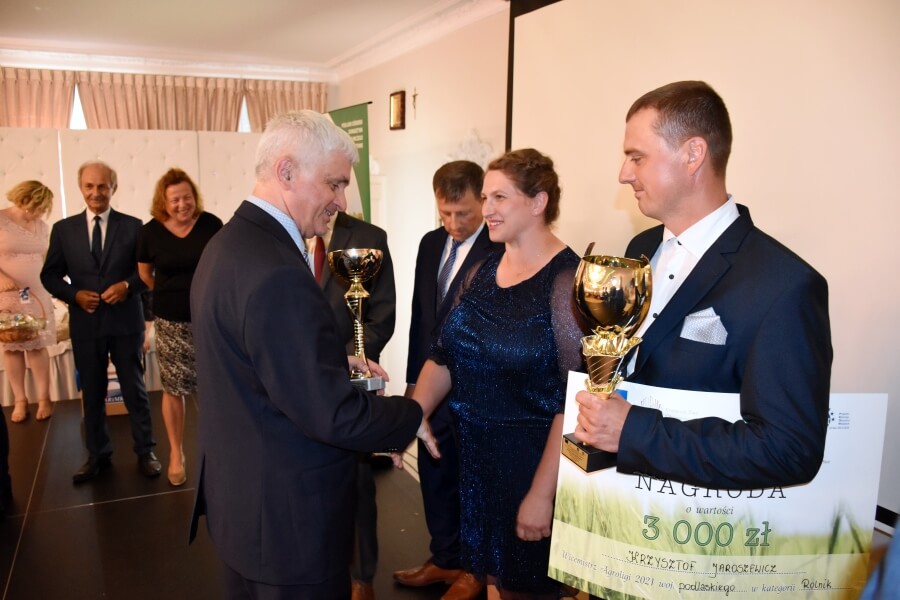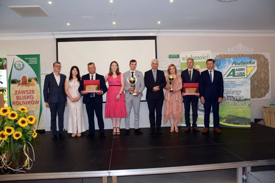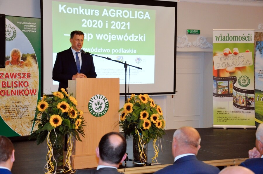 Spotkanie było doskonałą okazja do wyróżnienia i uhonorowania Mistrza Krajowego konkursu Agroliga 2020 w kategorii Rolnik, który otrzymali Państwo Małgorzata i Dariusz oraz Natalia i Damian Zarębowie z Jastrząbki Młodej w gminie Śniadowo oraz Wicemistrza Krajowego konkursu Agroliga 2020 w Kategorii Firmy, który zdobył – Wojciech Dzięgielewski właściciel firmy Agrotechnik Tafiły w gminie Stawiski. Gratulacje i słowa uznania Zwycięzcom etapu krajowego złożył Wojciech Mojkowski Dyrektor Podlaskiego Ośrodka Doradztwa Rolniczego w Szepietowie oraz Bohdan Paszkowski Wojewoda Podlaski.