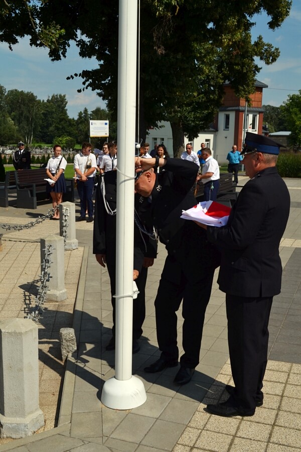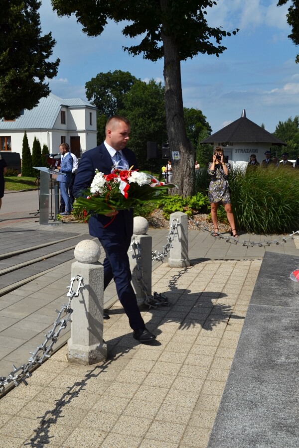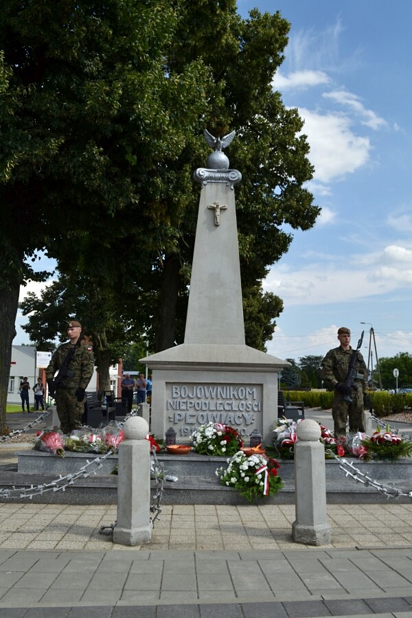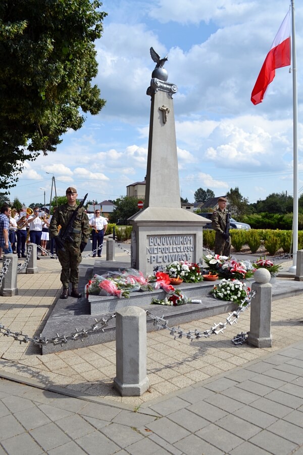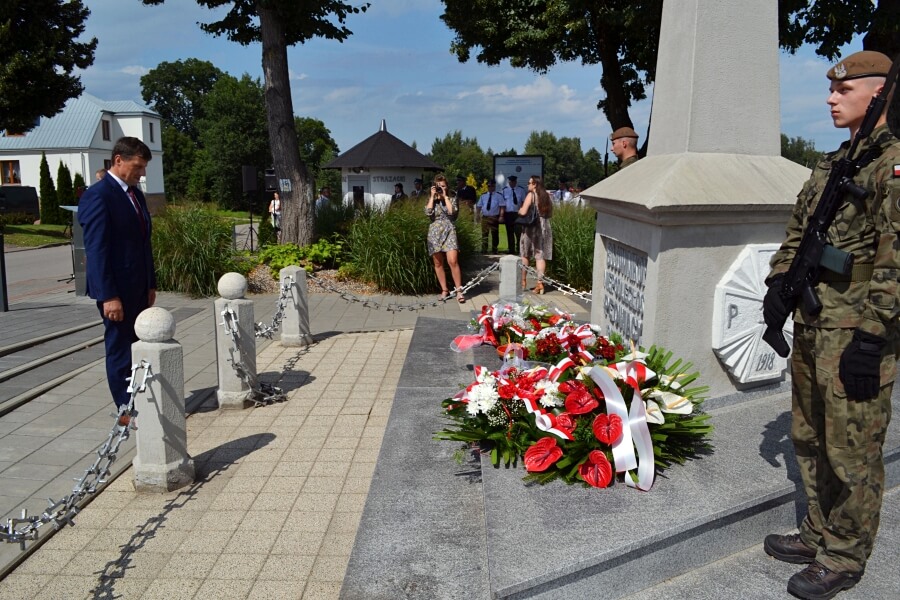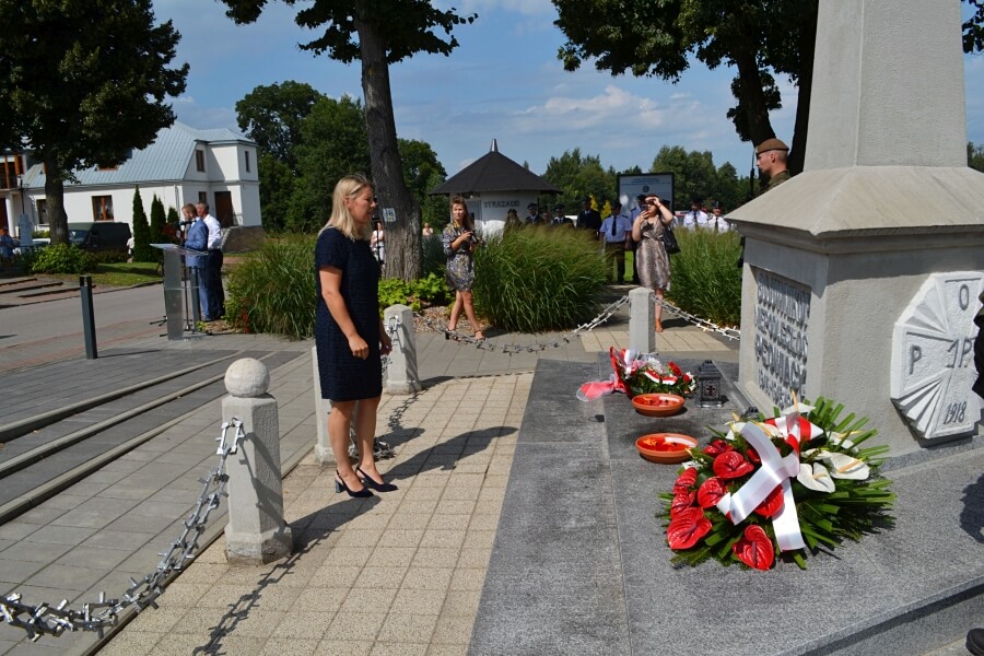 Następnie uczestnicy uroczystości przemaszerowali do Pomnika Orła Białego, gdzie wciągnięto na maszt flagę państwową i odśpiewano hymn narodowy. Przy pomniku zapalono znicze, złożono wiązanki kwiatów odmówiono modlitwę „Anioł Pański” w intencji poległych za wolność naszej ojczyzny.