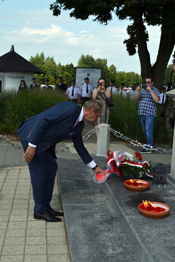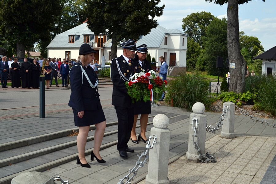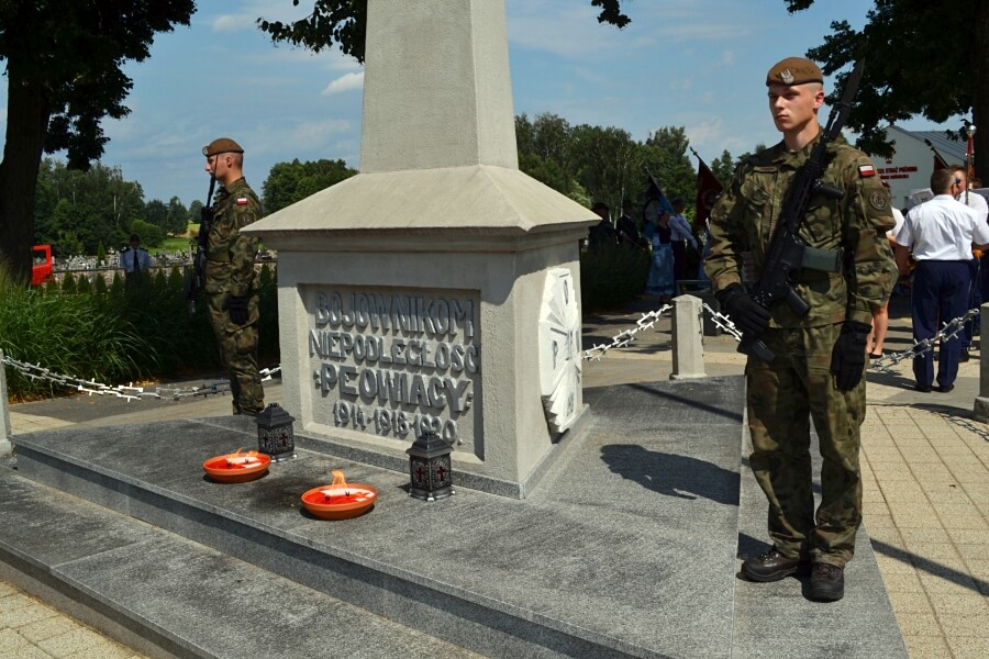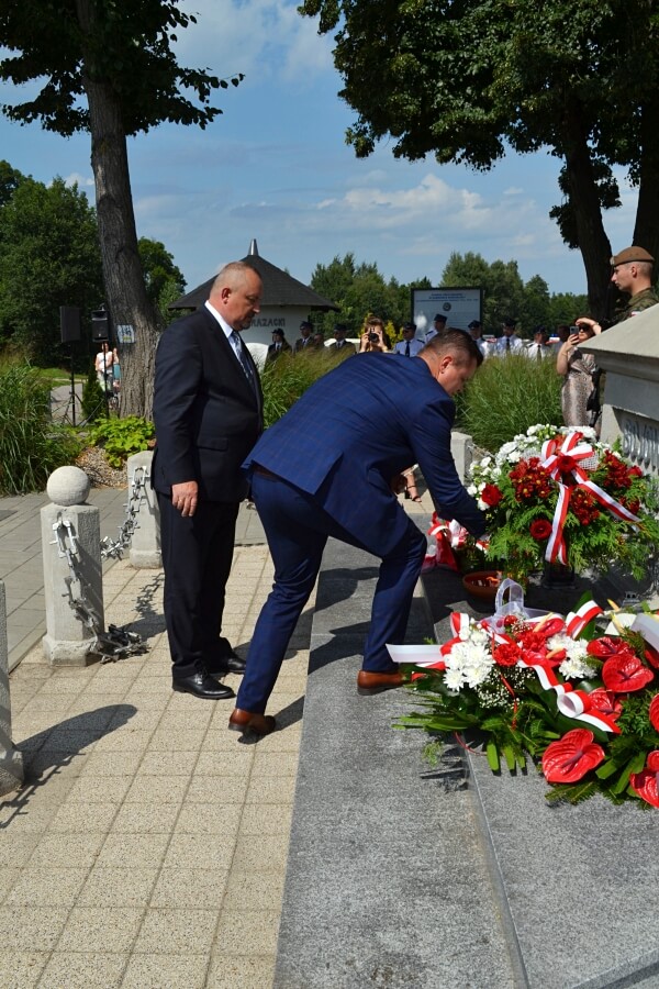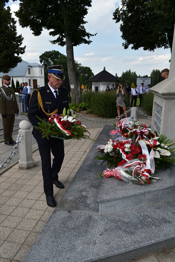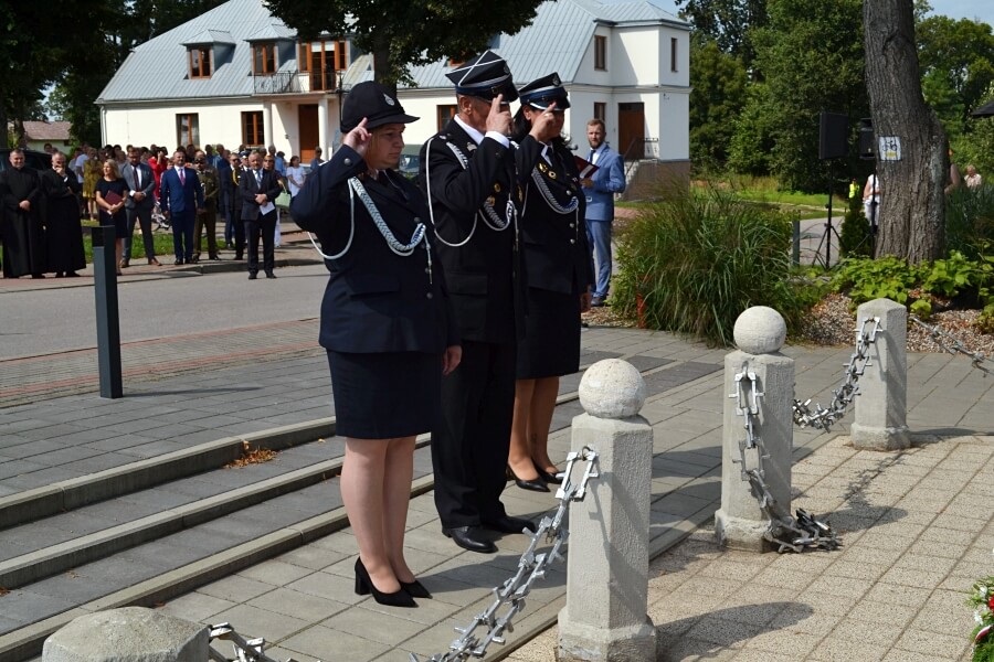 Następnie uczestnicy uroczystości przemaszerowali do Pomnika Orła Białego, gdzie wciągnięto na maszt flagę państwową i odśpiewano hymn narodowy. Przy pomniku zapalono znicze, złożono wiązanki kwiatów odmówiono modlitwę „Anioł Pański” w intencji poległych za wolność naszej ojczyzny.
