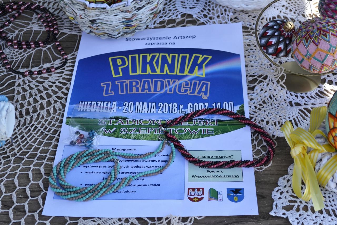 Odbył się konkurs wiedzy o tradycjach ludowych naszego powiatu, degustacja regionalnych potraw i wspólna zabawa ludowa. Członkowie Stowarzyszenia Artszep przeprowadzili warsztaty tradycyjnego wykonywania kwiatów z papieru. Powstałe podczas warsztatów prace stały się eksponatami powarsztatowej wystawy. Autorzy prac otrzymali upominki. Przedsięwzięciu towarzyszyła również wystawa rękodzieła artystycznego członków Stowarzyszenia Artszep. Uczestnicy „Pikniku z tradycją” mieli okazję obejrzenia występów LZPiT „Skowronki” z Brańska i RDZPiT „Podlasie” z Szepietowa. Oprawę muzyczną zapewnił zespół B.A.J.A. QUARTET.