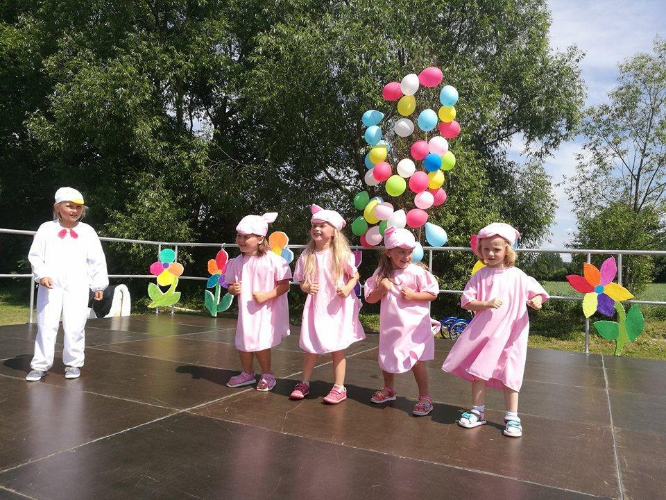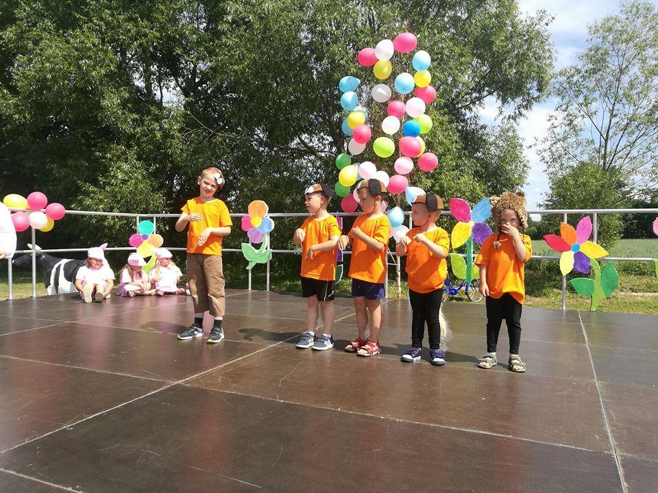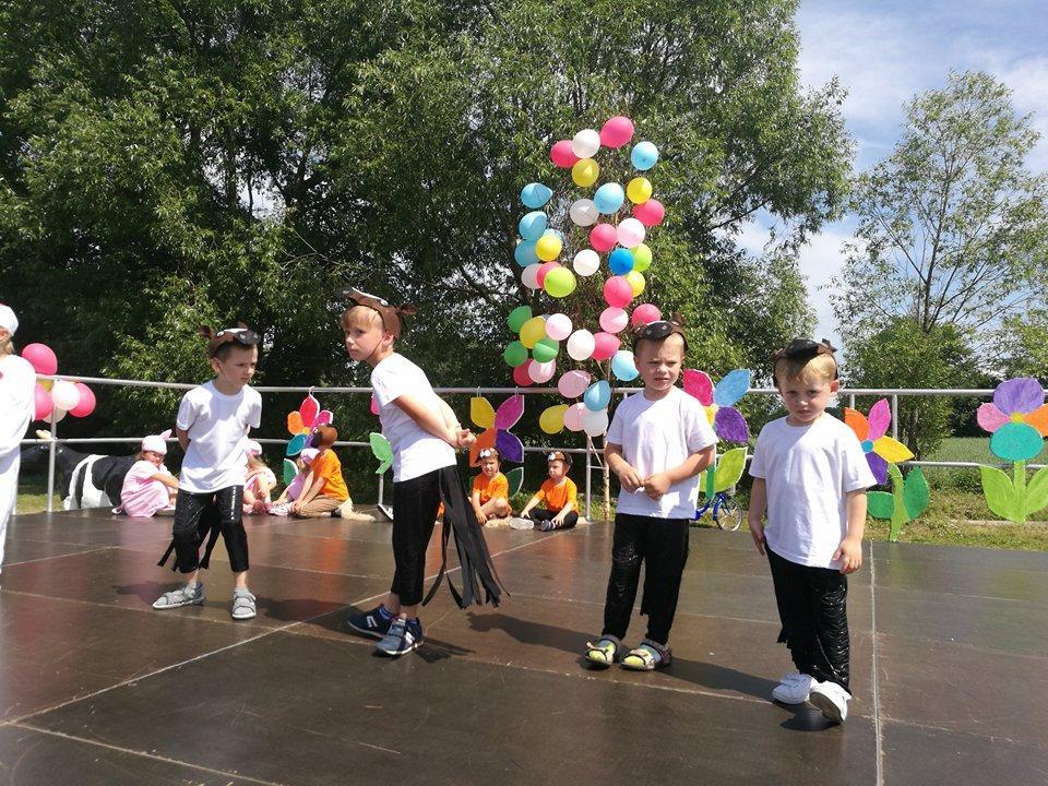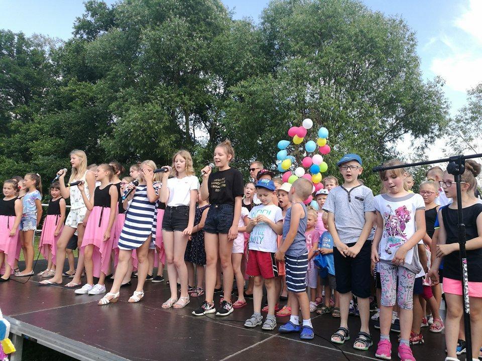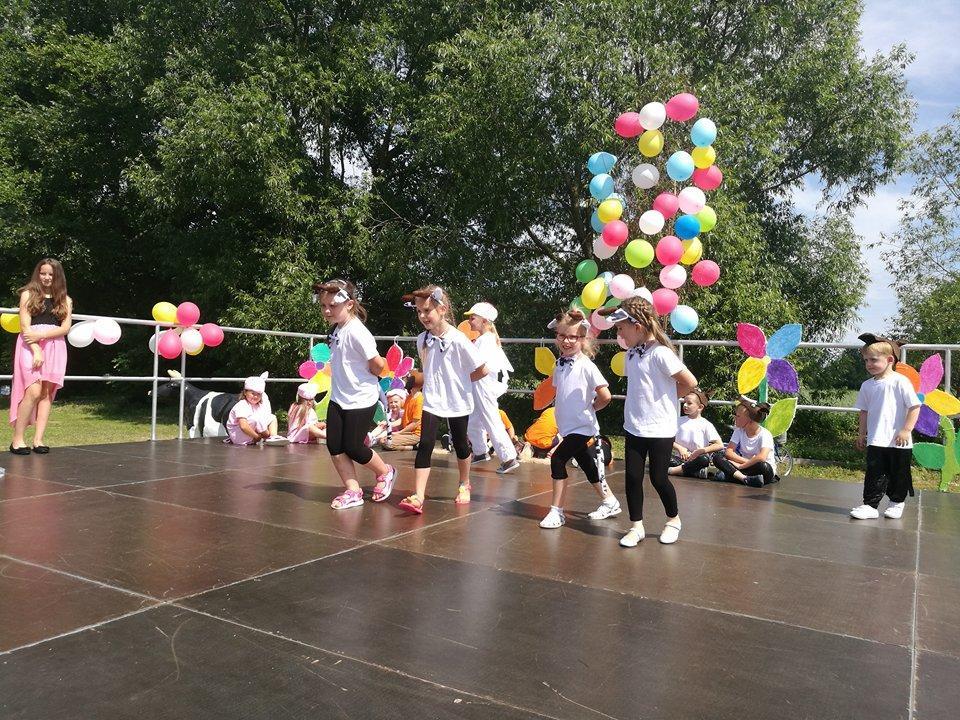 Na scenie zaprezentowali się aktorzy, tancerze i wokaliści z grup przedszkolnych i uczniów klas I-VII naszej szkoły, którzy szlifowali swoje talenty pod okiem pani Barbary Wojtuń. Wspaniałe kostiumy przygotowała pani Małgorzata Grochowska. Podczas festynu rodzice mogli zmierzyć się w zabawnych konkurencjach. Dzięki zaangażowaniu Rady Rodziców stoły uginały się pod ciężarem domowych smakołyków, a zjedzone kalorie można było spalić przy energetycznej zumbie. Nie zabrakło dmuchanego placu zabaw, gigantycznych baniek mydlanych i malowania twarzy dla najmłodszych uczestników imprezy. Festyn zakończył się dyskoteką pod chmurką, która była wyśmienitą zabawą dla wszystkich uczestników bez względu na wiek.