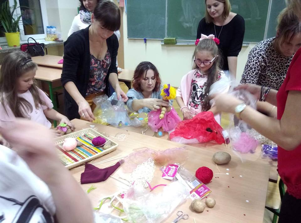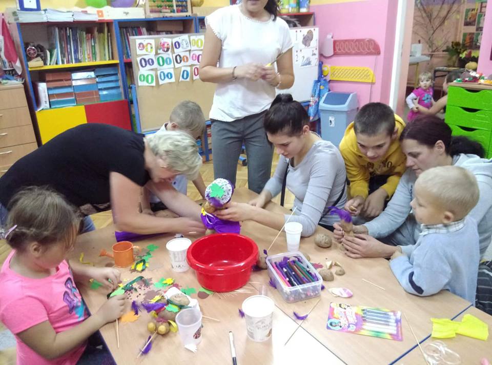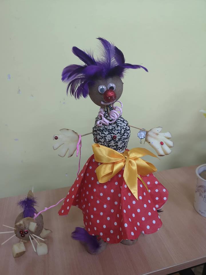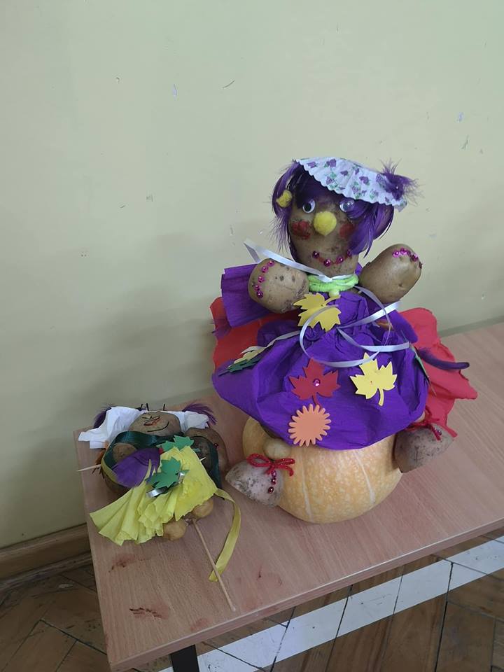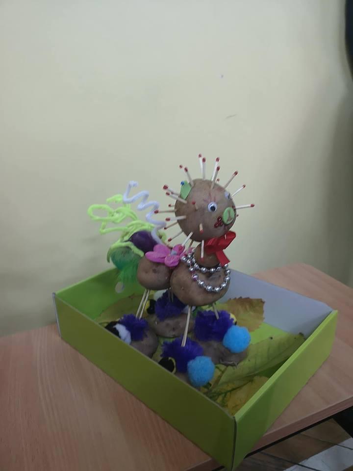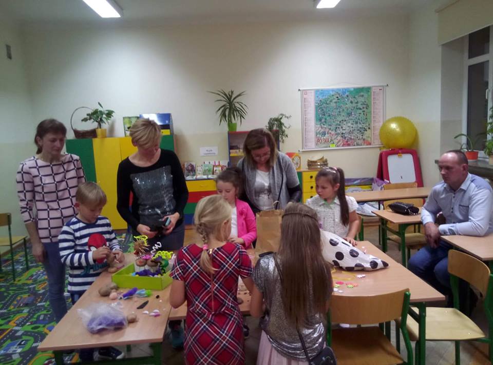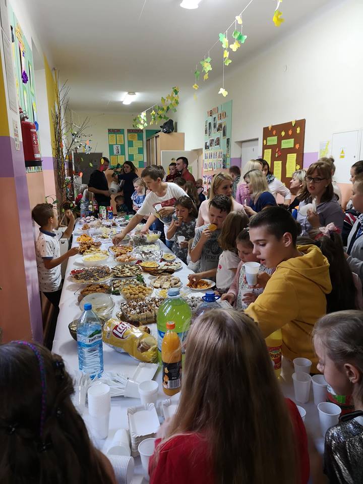 Stoły uginały się od potraw przygotowanych przez mamy i babcie. Na półmiskach królowały oczywiście ziemniaki. Nie zabrakło pysznych bab i kiszek, placków ziemniaczanych, frytek, kartaczy czy kopytek. Były nawet pączki z ziemniaków. Uczniowie z klas 0-III przy pomocy rodziców mogli wykazać się kreatywnością tworząc ziemniaczane ludziki. Starsi uczniowie ze swoimi rodzicami stanęli do rywalizacji sportowej. Obchody Święta Ziemniaka zakończyliśmy dyskoteką.
