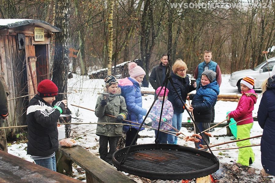 Po powrocie z leśnej wyprawy na wszystkich czekało ognisko i ciepły poczęstunek. Na zakończenie spotkania wręczono dzieciom pamiątkowe upominki i dyplomy.