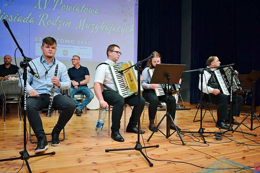Publiczność zgromadzona w sali widowiskowej GOK miała możliwość podziwiać piękno muzyki biesiadnej granej na żywo. Wśród uczestników znalazły się rodziny Rybickich, Porowskich, Domitrzów, Kaczyńskich i Figlerowiczów, które zaprezentowały zarówno talenty instrumentalne, jak i wokalne. Każdy z występów był entuzjastycznie przyjmowany przez publiczność, co potwierdzały gromkie brawa.