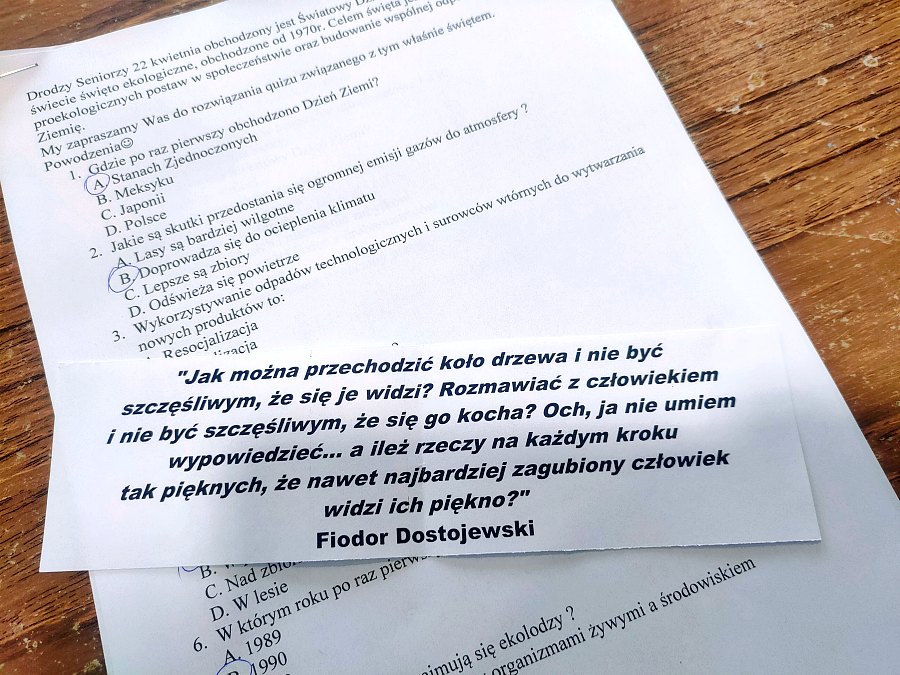 Wczoraj podczas cotygodniowego spotkania grupy 60+ w Gminnym Ośrodku Kultury uczestnicy spotkania zapoznali się ze szkodliwością plastiku na środowisko naturalne, a także jaki mają wpływ na to, aby ten negatywny wpływ ograniczyć. Następnie wspólnie rozwiązali quiz dotyczący Międzynarodowego Dnia Matki Ziemi, który w tym roku odbywa się pod hasłem "Ziemia kontra plastik". Na zakończenie spotkania wspólnie posadzili drzewka ozdobne na placu przy ośrodku kultury, a niektórzy z nich zabrali sadzonki drzewek do posadzenia w swoich ogrodach. Spotkanie poprowadził i przygotował instruktor GOK - Krzysztof Niemyjski.