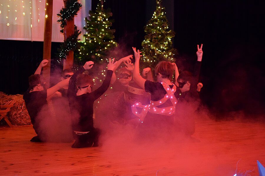 Kolejną prezentację przedstawili uczniowie i przedszkolaki ze Szkoły Podstawowej im. POW w Dąbrówce Kościelnej. Grupa przygotowywała się pod kierunkiem Barbary Wojtuń, przy wsparciu technicznym Grzegorza Samełko, Łukasza Olędzkiego i Arkadiusza Ołdakowskiego.