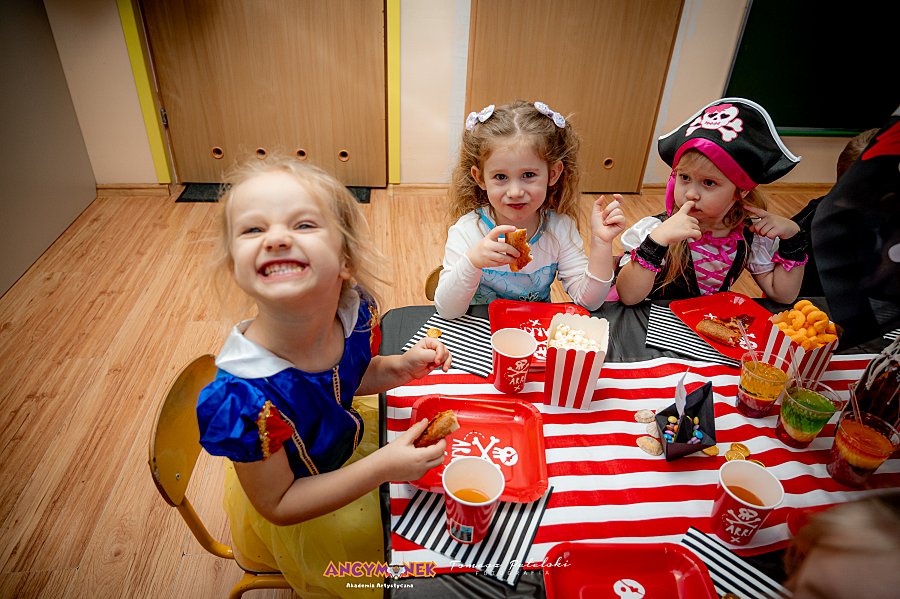 Po intensywnej zabawie mali piraci zasiedli do przygotowanej dla nich uczty. Bal dostarczył przedszkolakom niezapomnianych wrażeń i morskich emocji, które na długo pozostaną w ich pamięci.