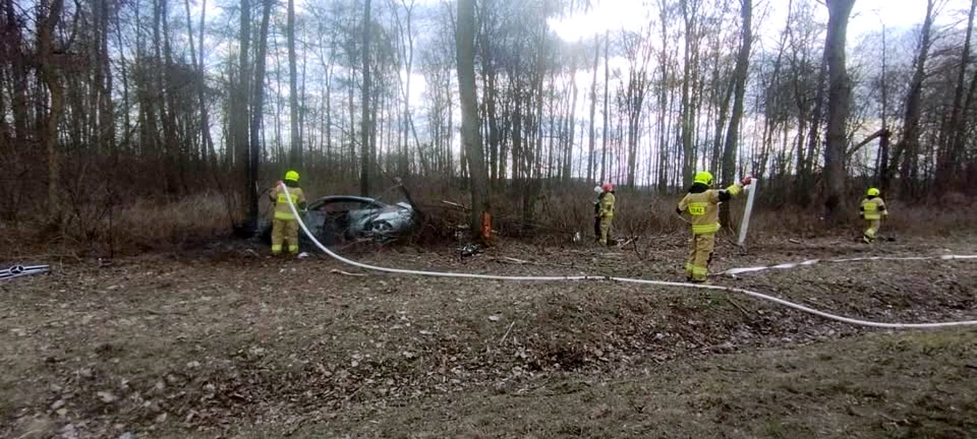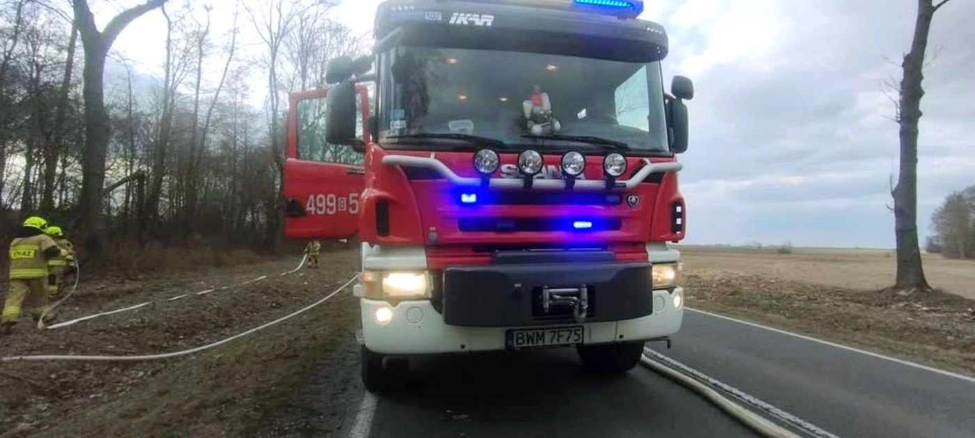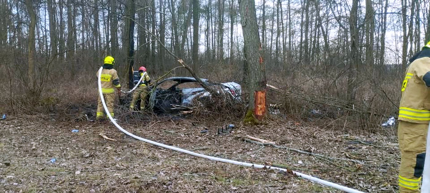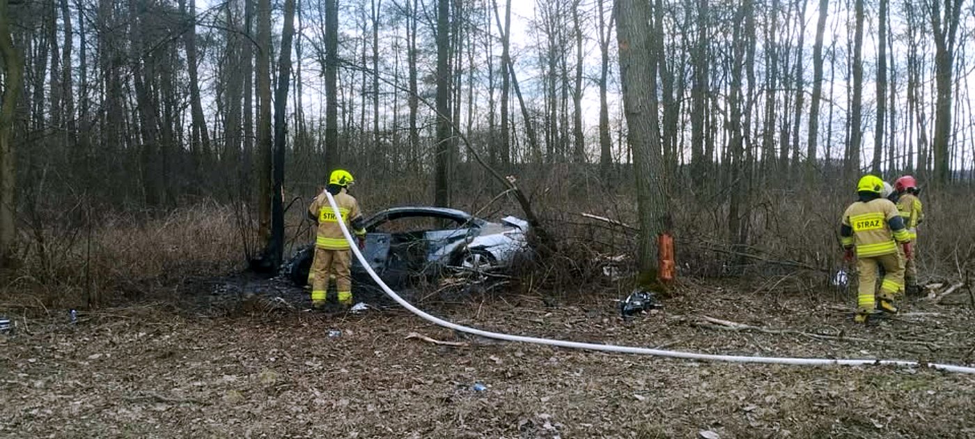 Po dotarciu na miejsce zdarzenia strażacy zastali płonący pojazd, który wcześniej uderzył w drzewo rosnące przy drodze. "Po przybyciu na miejsce pierwszego zastępu Straży Pożarnej stwierdzono, że doszło do pożaru samochodu osobowego, który uderzył w drzewo znajdujące się przy drodze" - przekazał kpt. Zalewski. "Samochodem podróżowała jedna osoba, której to strażacy udzielili pierwszej pomocy, a następnie przystąpili do gaszenia pożaru samochodu" - dodaje Zalewski.