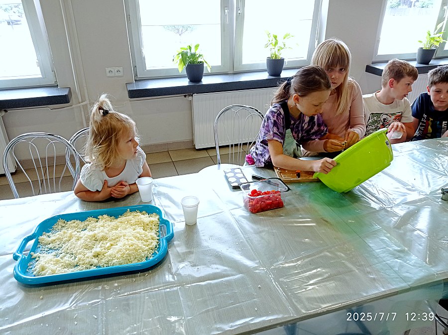 Drugi tydzień wakacyjnych zajęć kontynuował wcześniej rozpoczęte działania, wprowadzając jednocześnie nowe elementy programu. Odbyło się spotkanie poświęcone bezpieczeństwu podczas wakacji, które przeprowadził Inspektor z Państwowej Inspekcji Pracy. Uczestnicy mieli również okazję wziąć udział w warsztatach kulinarnych, podczas których uczyli się gotowania i odkrywali nowe smaki. Program uzupełniały gry i zabawy edukacyjne, łączące naukę z przyjemnością.