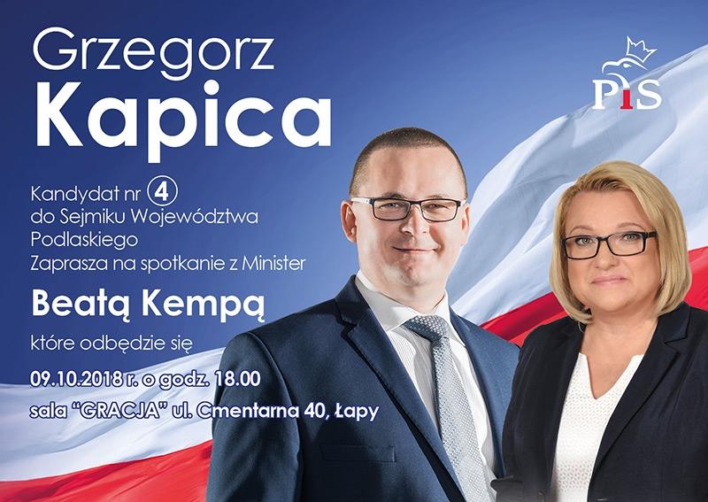 Grzegorz Kapica, kandydat nr 4 do sejmiku województwa podlaskiego zaprasza na spotkanie z Panią Minister Beatą Kempą.