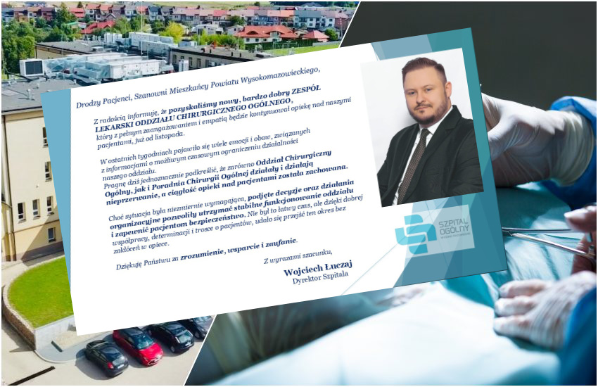 Szpital Ogólny w Wysokiem Mazowieckiem ma nowy, stały zespół chirurgów. Dyrektor placówki, Wojciech Łuczaj, przekazał najnowsze informacje dotyczące przyszłości Oddziału Chirurgicznego Ogólnego.