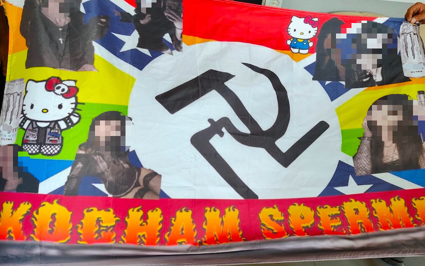 Dziś rano, na jednym z masztów telekomunikacyjnych w Wysokiem Mazowieckiem, pojawiła się nietypowa, kolorowa flaga. Zaskakujący był nie tylko sam fakt jej zawieszenia na dużej wysokości, ale również symbole, które się na niej znajdowały – między innymi przypominające sierp i młot. Sprawą natychmiast zajęła się miejscowa policja, która ustala okoliczności zdarzenia i poszukuje osób odpowiedzialnych za ten incydent.