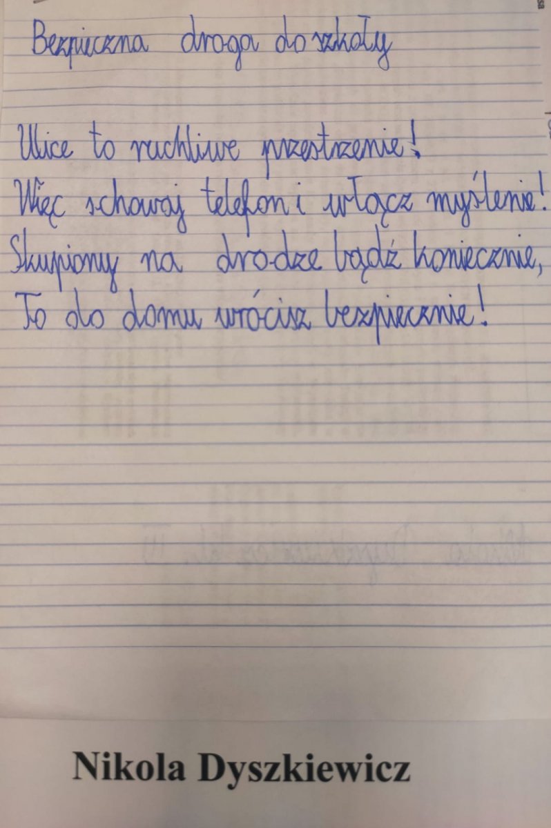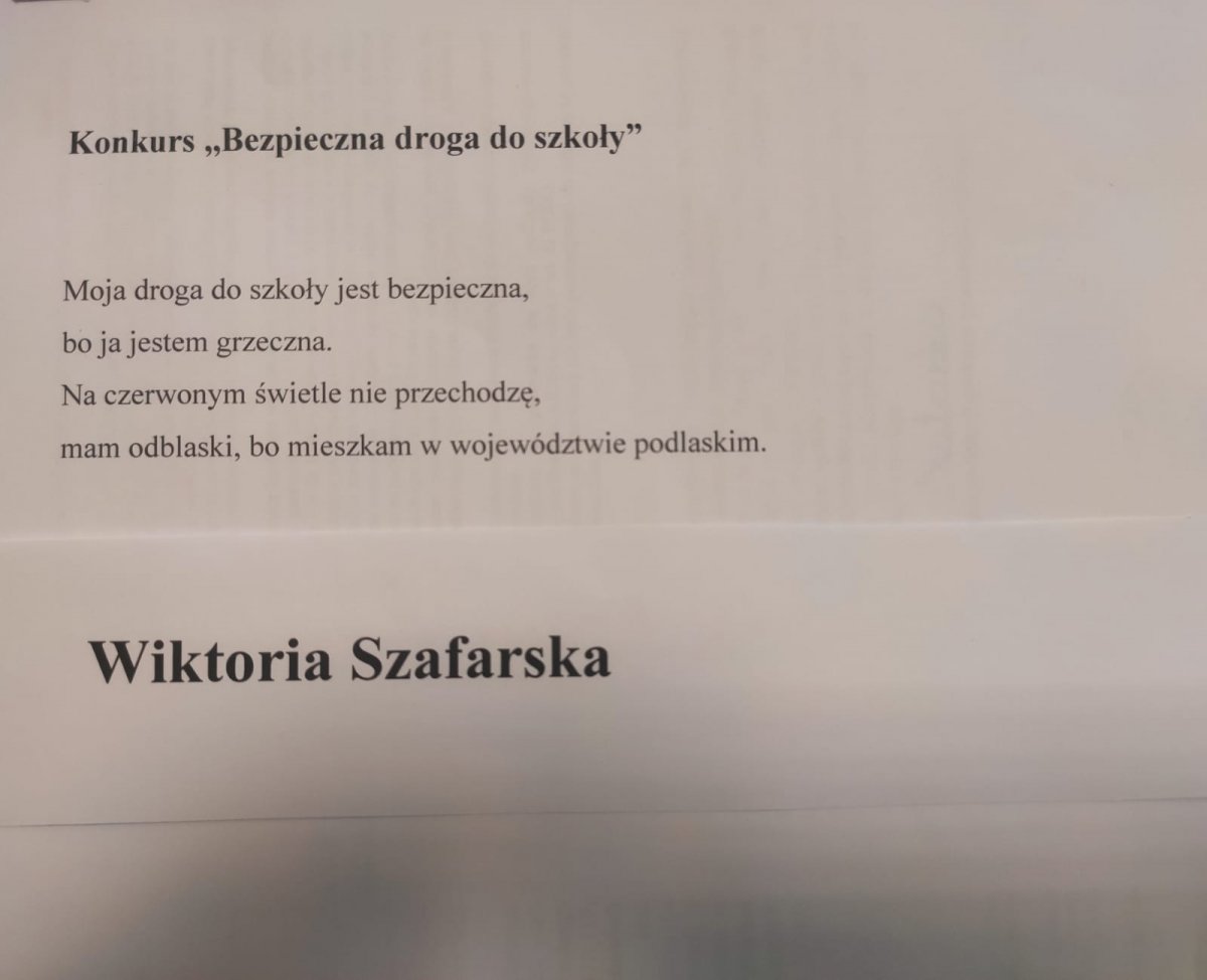 Policjanci z Wydziału Prewencji Komendy Powiatowej Policji w Wysokiem Mazowieckiem wyłonili zwycięzców konkursu na rymowankę „Bezpieczna droga do szkoły”.