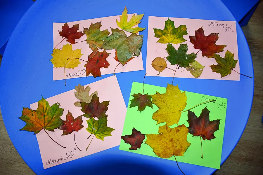 Spotkanie w "Oddziale dla dzieci" rozpoczęło się od czytania bajki o tematyce jesiennej. Dzieci dowiedziały się o atrybutach tej pory roku oraz o skarbach, które można znaleźć podczas spacerów w parku czy lesie. Teoria szybko przeszła w praktykę – uczestnicy mogli dotknąć kolorowych liści, kasztanów w łupinach i szyszek. Z zebranych liści maluchy stworzyły piękne obrazki, które zabrały ze sobą do domów.