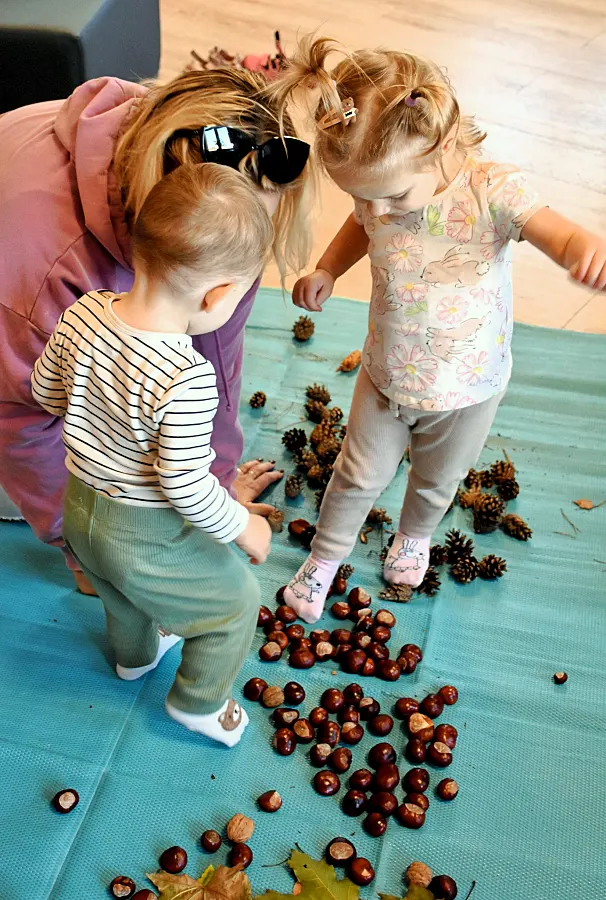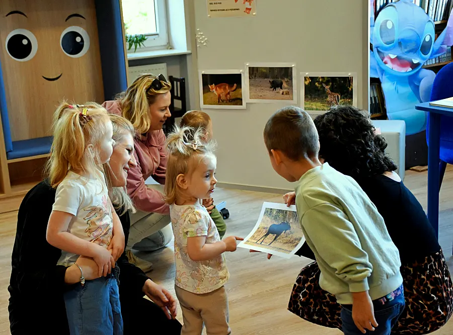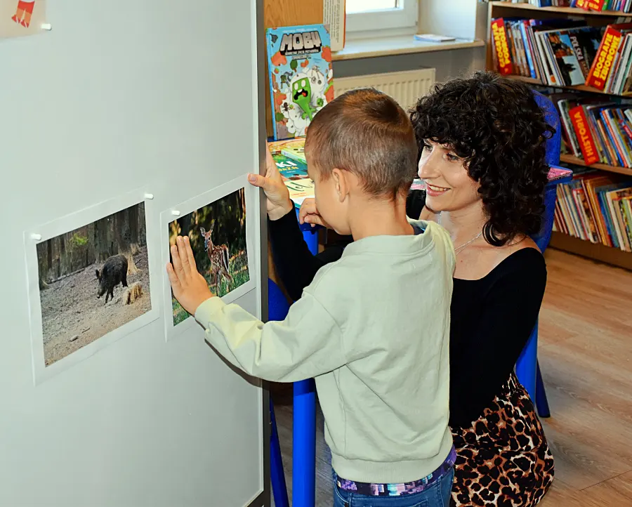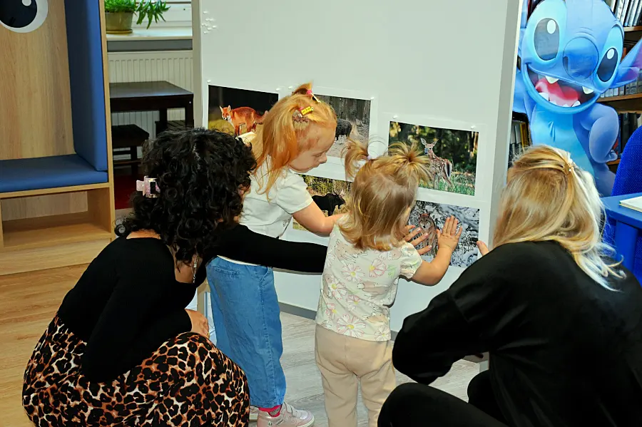 Największą atrakcją okazały się jednak zajęcia sensoryczne. Dzieci miały okazję chodzić bosymi stopami po jesiennych darach natury, co, jak relacjonują pracownicy biblioteki, sprawiło im ogromną frajdę. Następnie tematyka przeniosła się na leśne zwierzęta. Mali goście najpierw zobaczyli je na zdjęciach w książce, a potem z entuzjazmem przyczepiali ich wizerunki za pomocą magnesów do tablicy.