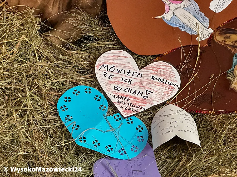 W kościele pw. św. Jana Chrzciciela w Wysokiem Mazowieckiemszopka została usytuowana w bocznej nawie, otoczona naturalnym sianem i choinkami. Uwagę zwracają duże, realistyczne figury Świętej Rodziny, pasterzy oraz zwierząt. Jednak tym, co najbardziej przyciąga wzrok i chwyta za serce, są elementy dodane przez najmłodszych parafian. Wokół żłóbka rozsypane są papierowe serca z odręcznie wypisanymi listami i prośbami do Dzieciątka Jezus. Dziecięca szczerość, którą można wyczytać na kolorowych kartkach, jest rozbrajająca. Wśród laurek z podziękowaniami i prośbami o prezenty, znajdują się wyznania, które zmuszają do refleksji nawet dorosłych.