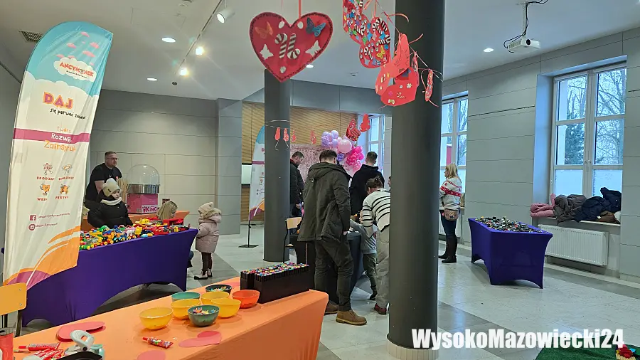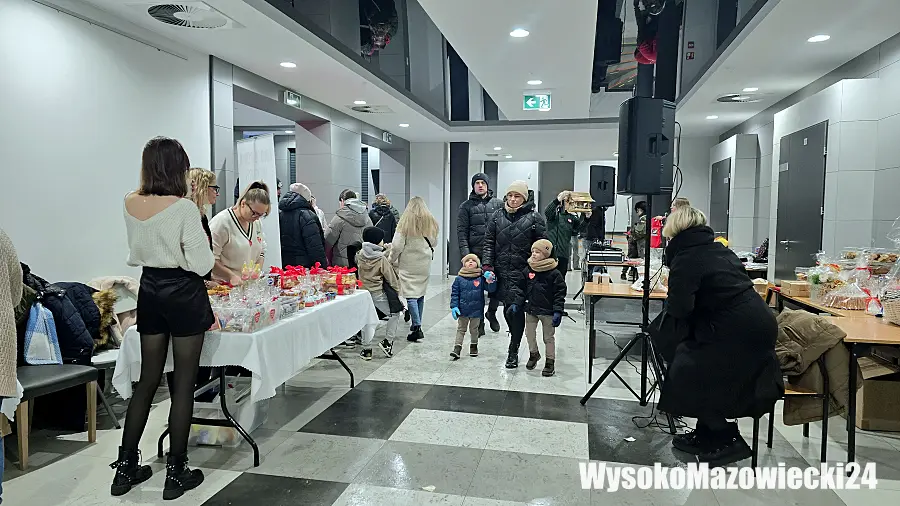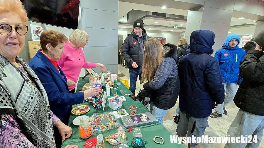 Równie wiele działo się i wciąż dzieje wewnątrz budynku Miejskiego Ośrodka Kultury. Od południa trwają tam licytacje gadżetów WOŚP oraz przedmiotów przekazanych przez darczyńców. Hol ośrodka wypełniły stoiska przygotowane m.in. przez Koła Gospodyń Wiejskich, oferujące domowe wypieki i przekąski. Dla najmłodszych przygotowano strefę animacji. Dzieci mogą skorzystać z malowania twarzy oraz brać udział w warsztatach plastycznych. Emocje, podobnie jak na zewnątrz, budziły rozgrywane w holu zawody w siłowaniu na rękę, w których swoich sił próbowali lokalni siłacze.