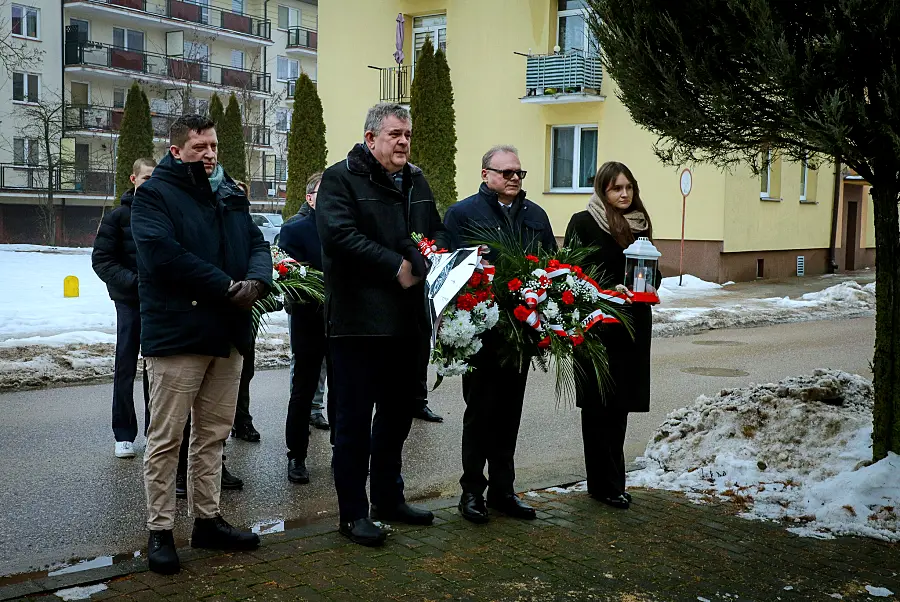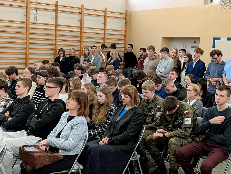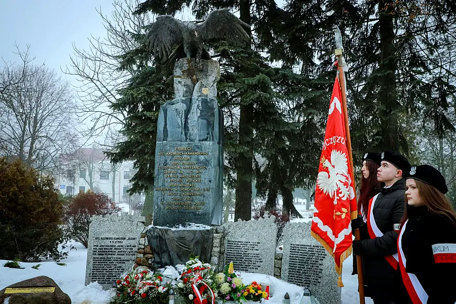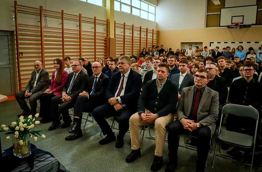 Zanim uczniowie przystąpili do rozwiązywania testów, uroczystość rozpoczęła się od oddania hołdu bohaterom walk o wolność. Delegacje złożyły kwiaty i zapaliły znicze w miejscach pamięci, które są szczególnie ważne dla lokalnej społeczności: przed Pomnikiem Ofiar Rządów Totalitarnych oraz przed pomnikiem kpt. Kazimierza Kamieńskiego „Huzara” i jego podkomendnych. Dla społeczności Centrum Kształcenia Zawodowego, którego patronem jest Armia Krajowa, kultywowanie pamięci o żołnierzach podziemia niepodległościowego stanowi istotny element tożsamości szkoły.