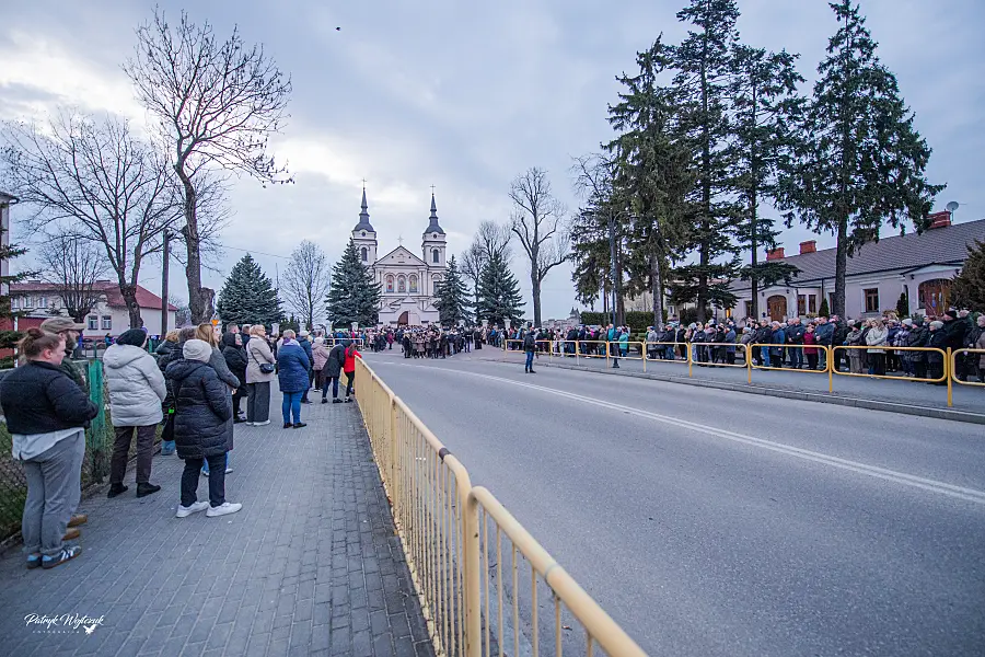 Wierni wyruszyli o godzinie 19:00. Trasa tegorocznego nabożeństwa prowadzi ulicami: Kościelną, Jagiellońską, Ludową, Szpitalną, Popiełuszki, Sucharskiego, Wspólną, z planowanym powrotem do świątyni ulicą 1 Maja.