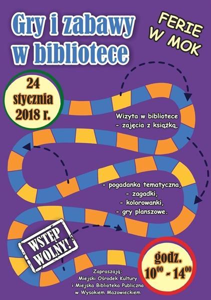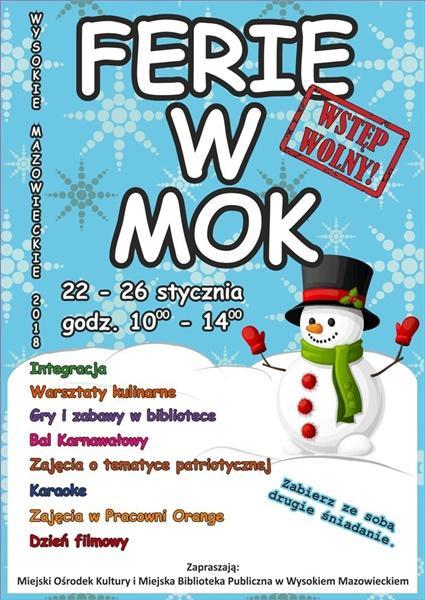 Miejski Ośrodek Kultury i Miejska Biblioteka Publiczna zapraszają na ferie zimowe w Wysokiem Mazowieckiem.