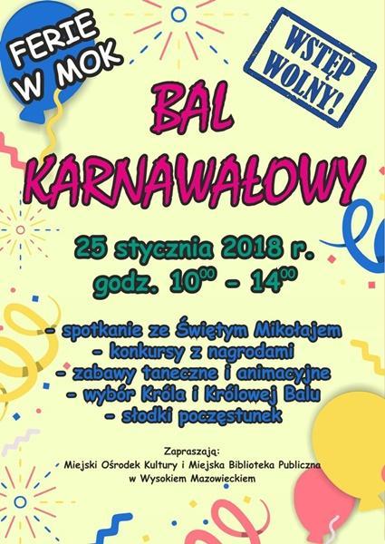 Zapraszamy dzieci od pierwszej klasy szkoły podstawowej. Organizatorzy: Miejski Ośrodek Kultury i Miejska Biblioteka Publiczna w Wysokiem Mazowieckiem.