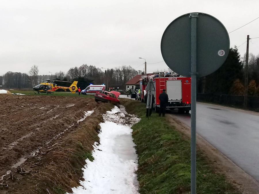 Do ostatniego porannego zdarzenia doszło w okolicy miejscowości Kapłań w gminie Klukowo. Osobowym Nissanem podróżowały cztery osoby. Kierująca samochodem kobieta straciła panowanie nad pojazdem, zjechała do rowu i dachowała. Na miejsce przybył helikopter Lotniczego Pogotowia Ratunkowego, który zabrał do szpitala kierowcę. Do szpitala, przez zespół ratownictwa medycznego, została zabrana jeszcze jedna osoba podróżująca pojazdem. Na miejsce zdarzenia przybyła również policja, JRG Wysokie Mazowieckie oraz OSP KSRG Klukowo.