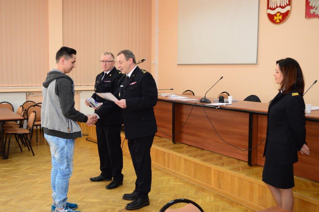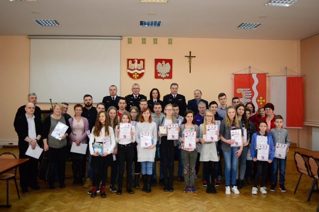 Nagrody, w postaci drobnego sprzętu RTV i AGD oraz czujek czadu, zostały ufundowane przez Starostwo Powiatowe oraz Zarząd Oddziału Powiatowego ZOSP RP w Wysokiem Mazowieckiem. Poza nagrodami, które odebrali zwycięzcy, wszystkim uczniom wręczono pamiątkowe dyplomy, a opiekunom podziękowania za wysiłek włożony w przygotowanie młodzieży do konkursu.