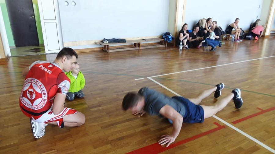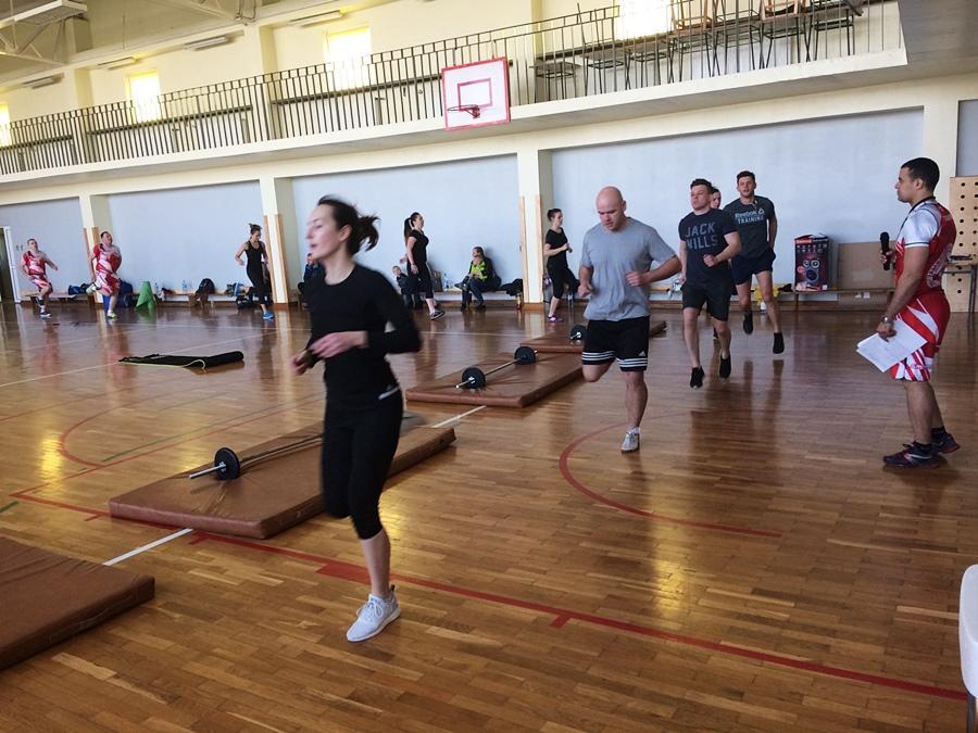 - WOD II: 10 okrążeń sali, 50 razy Mountain Climbers, 50 razy Bird Dog, 50 razy rowerek na brzuch, 30 razy nożyce na brzuch.
