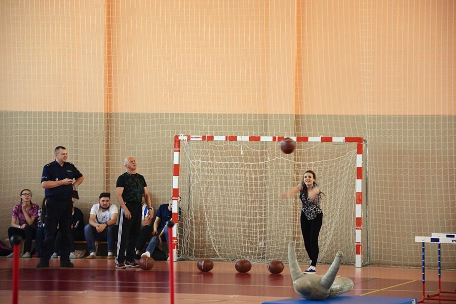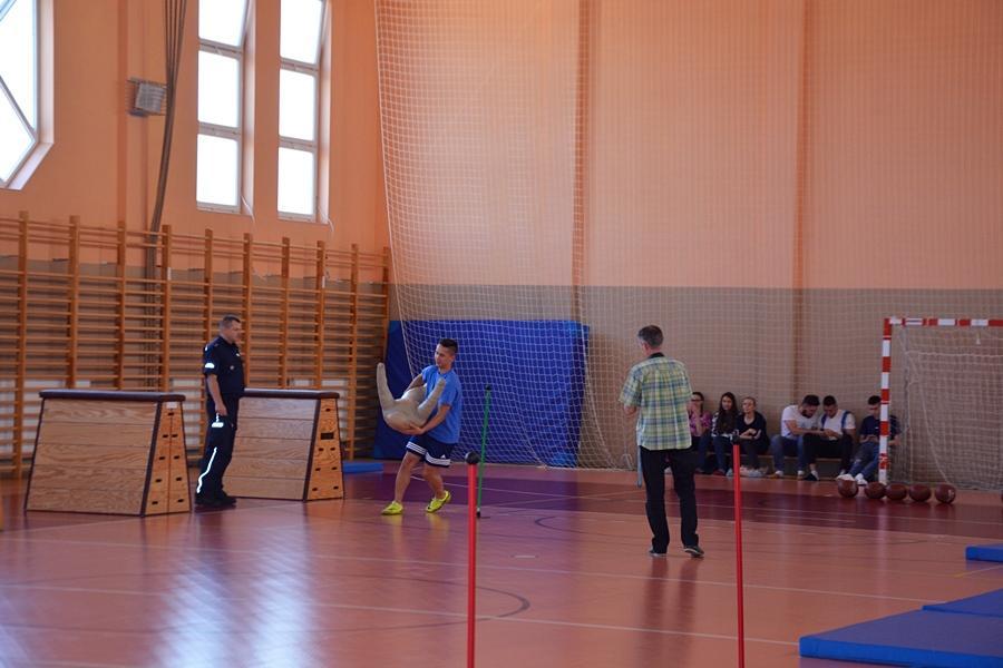 W miniony piątek na sali gimnastycznej Zespołu Szkół Ogólnokształcących i Policealnych w Wysokiem Mazowieckiem wysokomazowieccy policjanci demonstrowali prawidłowe pokonanie toru przeszkód, który jest jednym z elementów postępowania kwalifikacyjnego do służby w Policji.