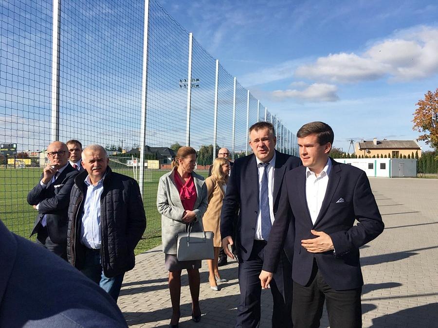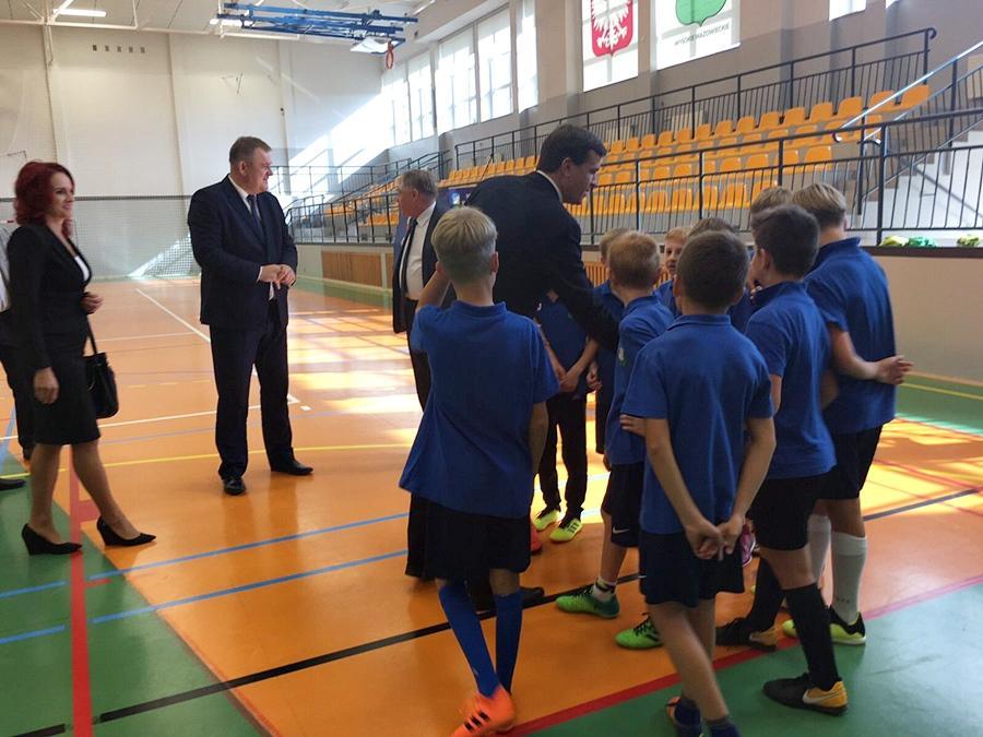 Minister Sportu Witold Bańka odwiedził dzisiaj Wysokie Mazowieckie. Spotkał się z samorządowcami oraz obejrzał niedawno oddaną do użytku halę sportową przy Miejskim Zespole Szkół.