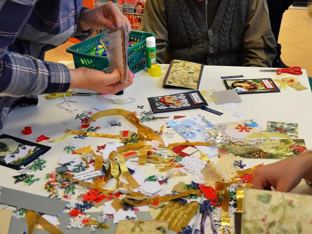 Po południu "Magię Świąt" przywoływaliśmy wspólnie z dziećmi, młodzieżą i dorosłymi, którzy również przygotowali pocztówki bożonarodzeniowe. Oba spotkania były "magiczne" – pełne uśmiechu i życzliwości. Dziękujemy za Waszą obecność! Powstałe kartki uczestnicy mogli zabrać do domu lub zostawić w naszej pracowni. Zostaną one wysłane do Pracowni Orange z 3. edycji w całej Polsce.