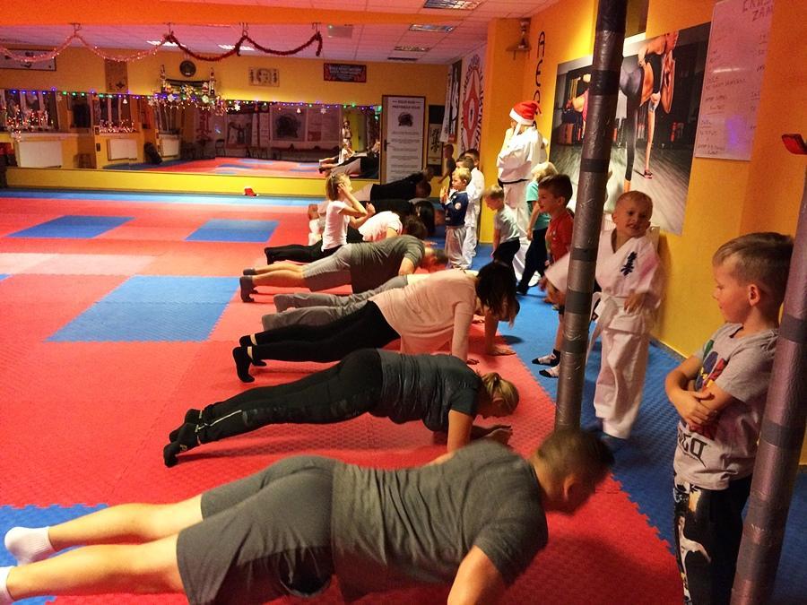 Starsza grupa karateków rywalizowała o czekoladowego mikołaja w torze przeszkód, a uczestnicy Crossfit i Aerobiku mieli do wykonania na czas ćwiczenia, zwycięzca w nagrodę otrzymał czekoladowego Mikołaja.